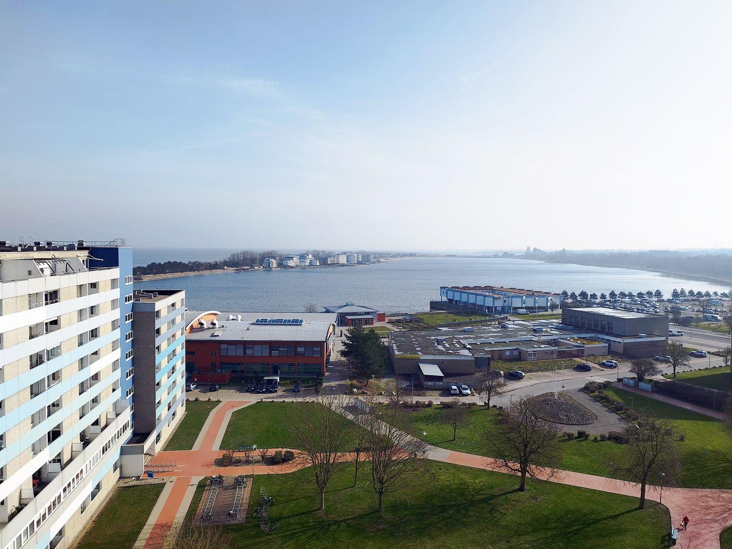 Genießen Sie hier die angenehme Morgensonne und den herrlichen Blick über den Binnensee Richtung Yachthafen, Ostsee und Fehmarnsundbrücke.