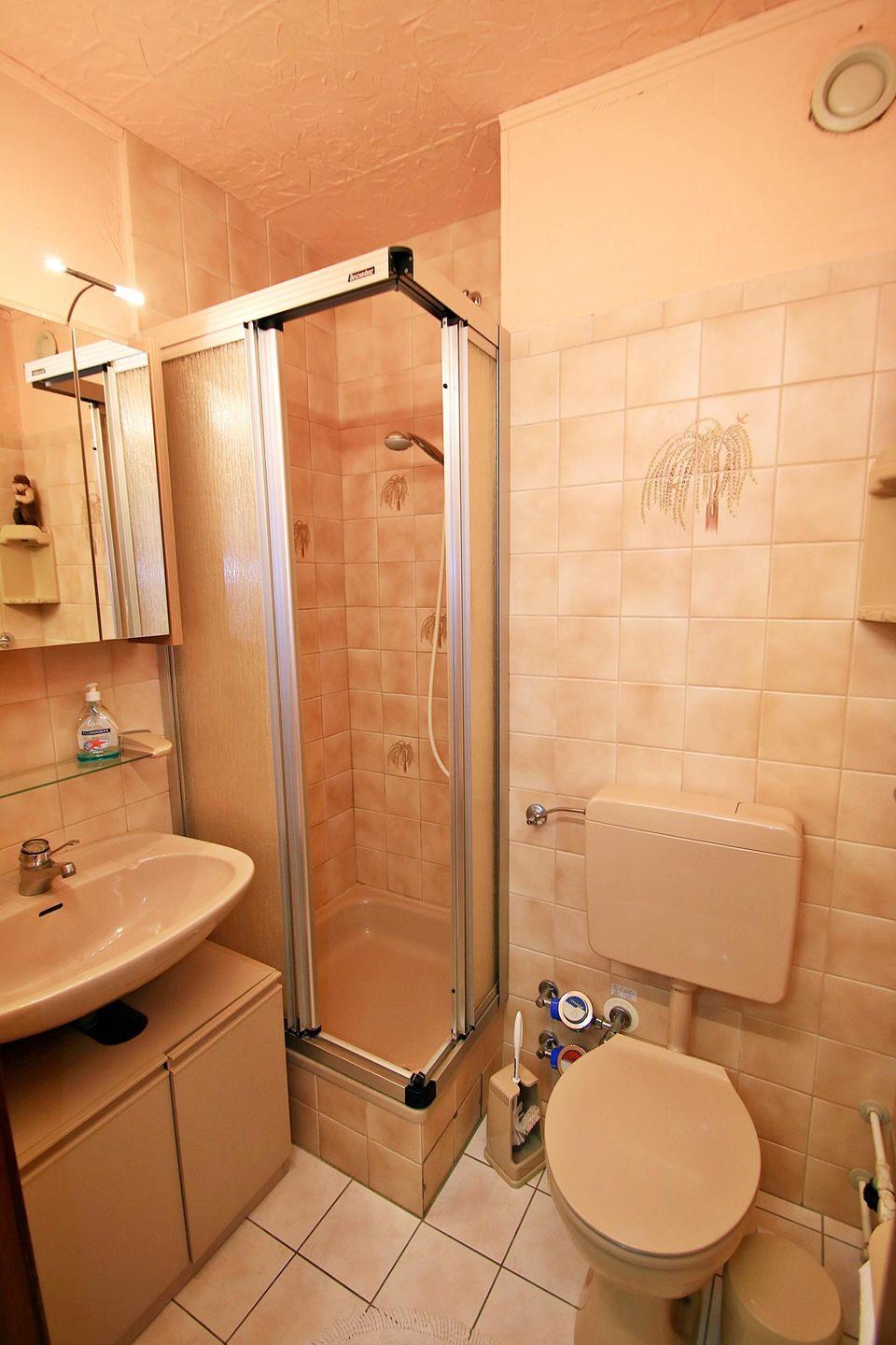Bad mit Duschkabine und WC - Fön vorhanden.