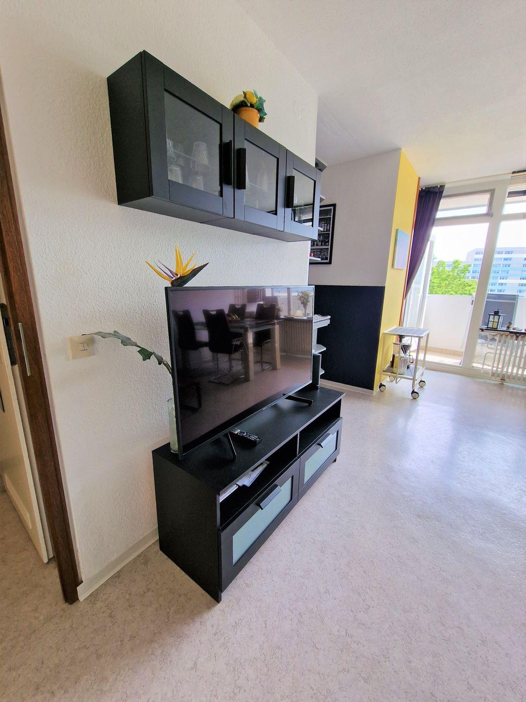 Auf dem möblierten Balkon können Sie die Sonne genießen und einen schönen seitlichen Blick auf den Binnensee und den Innenhof werfen. Die Wohnung ist Nichtraucher, haustierfrei und bietet kostenfreies Highspeed-Internet.