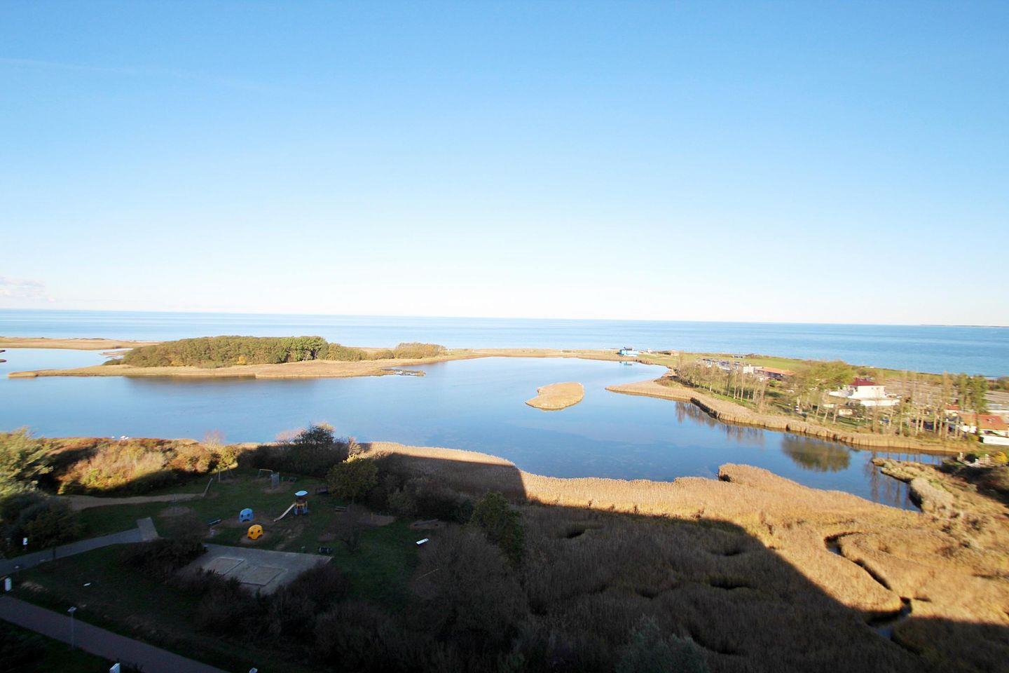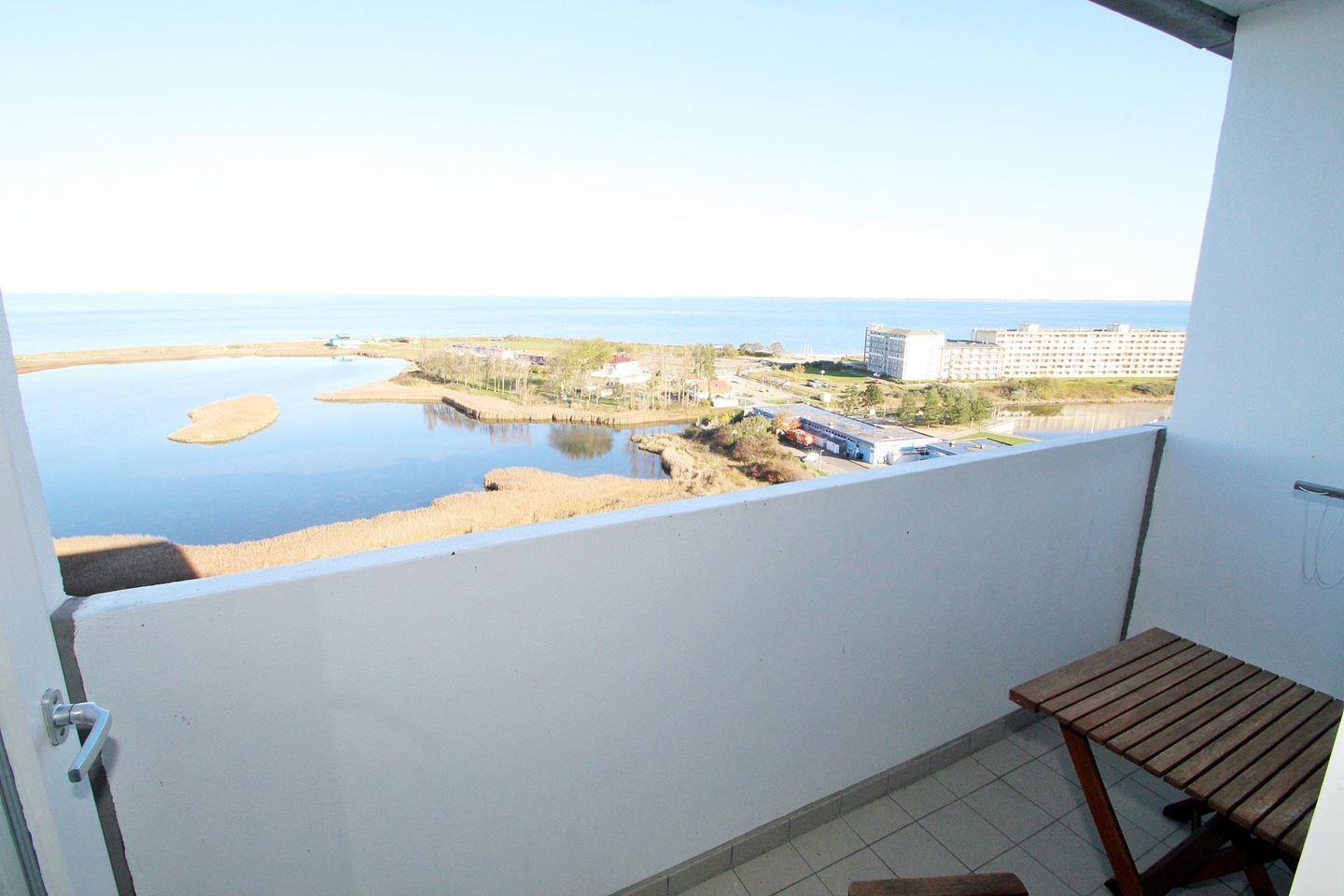 in der 12. Etage mit Balkon zur Nordseite und Blick über die Ostsee Richtung Insel Fehmarn.