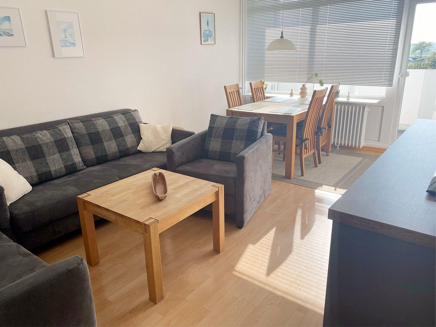 Großzügige, helle und sehr gepflegte Ferienwohnung in der 1. Etage mit Süd/West-Balkon und schönem Blick auf die Wiesen und Felder Heiligenhafens.