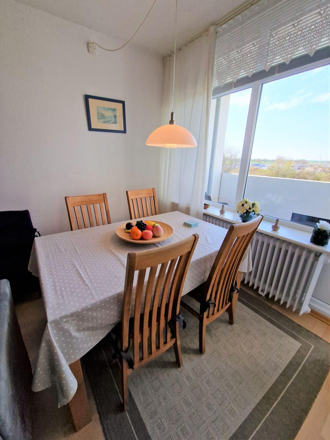 Großzügige und helle Ferienwohnung in der 1. Etage mit Süd/West-Balkon und schönem Blick auf die Wiesen und Felder Heiligenhafens.