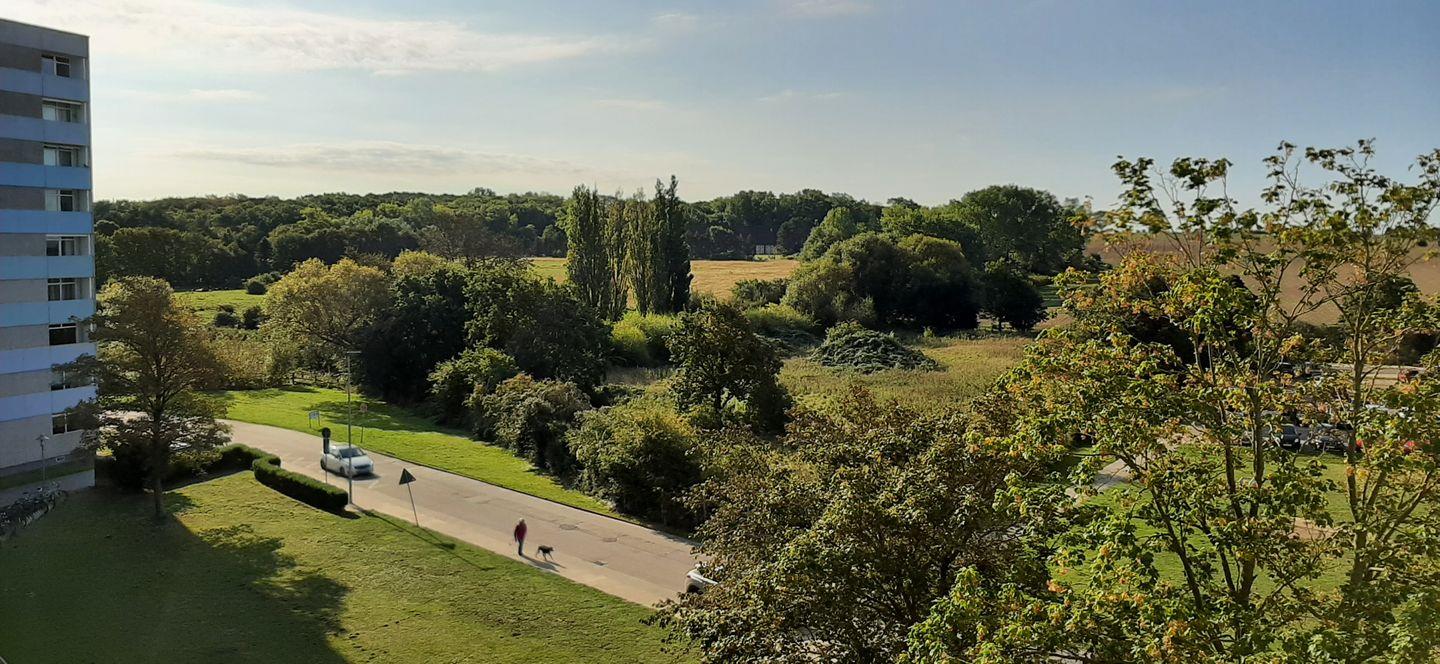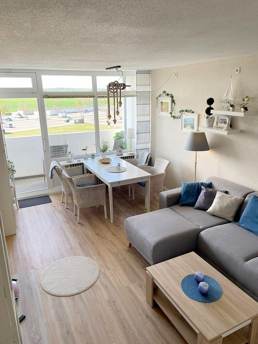Schöne und harmonisch-maritim aufeinander abgestimmte Wohnung in der 4. Etage, Balkon zur Südseite mit herrlichem Blick über die Felder.