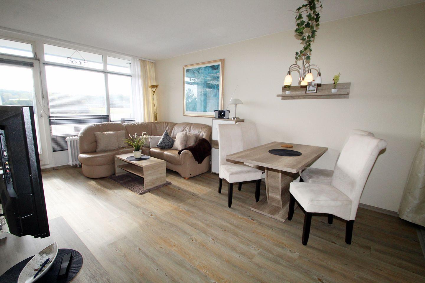 Gemütliche Ferienwohnung in Heiligenhafen mit Balkon, moderner Küche und Blick nach Süden für erholsame Tage.