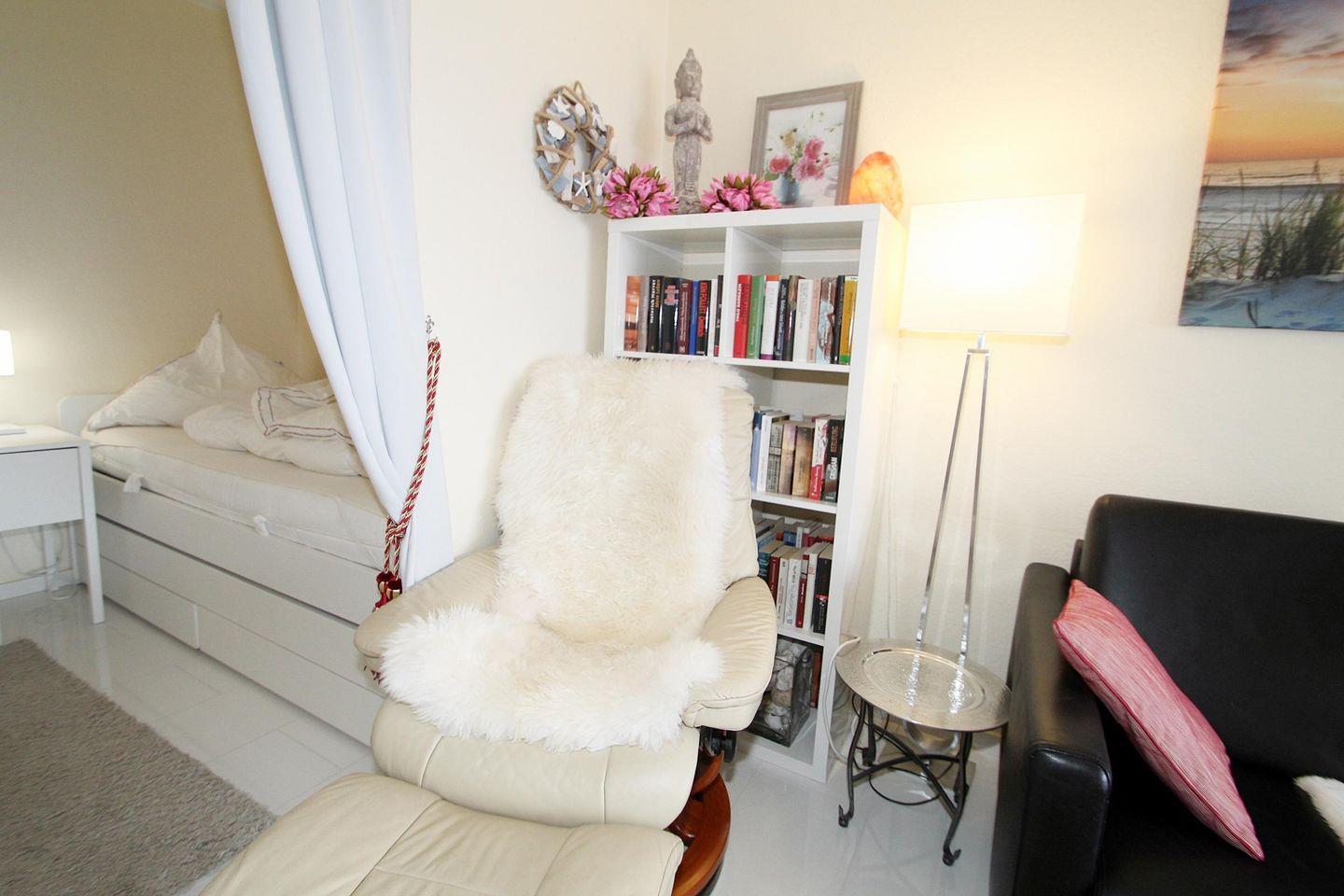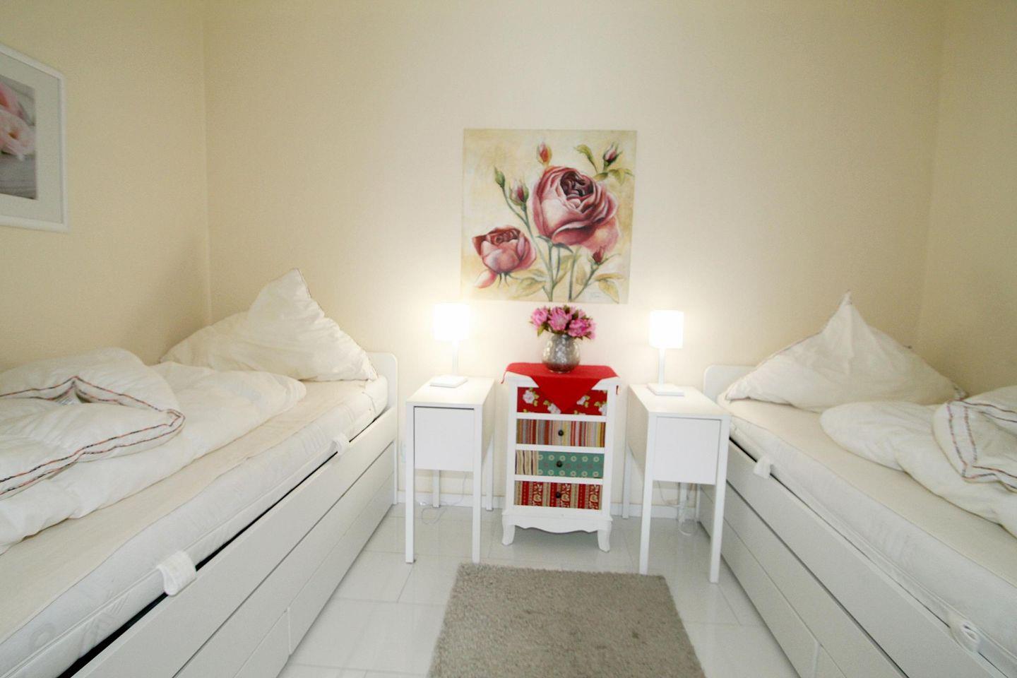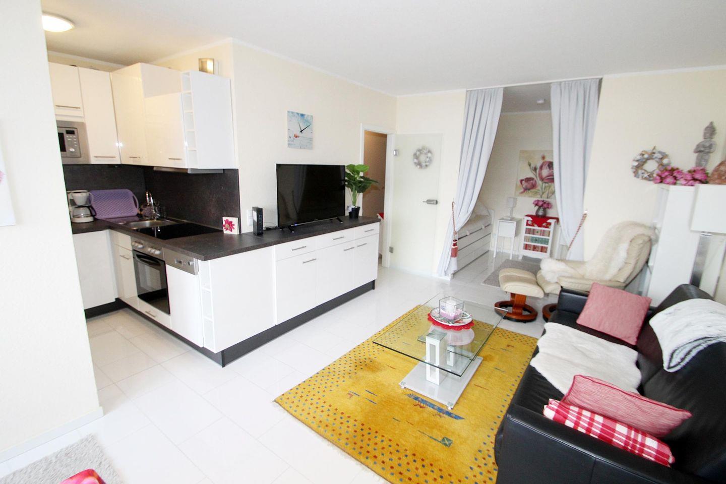 Willkommen in dieser stilvollen Ferienwohnung in der 5. Etage mit Balkon zur Nordseite und einem wunderbaren Blick über die Ostsee – einen schönen Ort, um den Urlaub in vollen Zügen zu genießen. Ihr Wildrosentraum am Meer! Der helle Wohnbereich ist freundlich und komfortabel eingerichtet: Eine bequeme Couchgarnitur lädt zum Entspannen ein, ergänzt durch einen hochwertigen Sessel mit Fußhocker. Für Unterhaltung sorgen ein großer LCD-TV (110?cm) und eine HiFi-Anlage. Der Essbereich befindet sich direkt am Fenster – von hier aus genießen Sie den ungehinderten Blick auf die Ostsee in voller Pracht. Der Schlafbereich ist durch einen Vorhang vom Wohnraum getrennt und mit zwei hochwertigen Einzelbetten (90?×?200?cm, hoher Einstieg) ausgestattet, die erholsame Nächte garantieren. Das separate Kinderzimmer verfügt über ein Einzelbett (80?×?190?cm) und eine eigene Terrassentür auf den Balkon, sodass kleine Gäste ihren eigenen Rückzugsort haben. Die offene Küche ist modern und vollständig ausgestattet: Ceranfeld, Backofen, Spülmaschine, Kühlschrank und Kaffeemaschine – alles, was Sie für eine unkomplizierte Selbstversorgung benötigen. Das Badezimmer überzeugt mit einer Dusche (hoher Einstieg) und WC. Auf dem Balkon mit Sitzgelegenheiten können Sie die frische Ostseeluft genießen und haben dabei einen direkten Blick auf das Meer – perfekt für gemütliche Morgenstunden oder entspannte Abende. Die gesamte Wohnung ist liebevoll, modern und komfortabel eingerichtet. Hier lässt sich der Urlaub von Anfang an in vollen Zügen genießen! Kostenfreie Parkplätze stehen direkt in der Nähe der Wohnung zur Verfügung. Damit sich alle Gäste rundum wohlfühlen, ist diese Wohnung eine Nichtraucherwohnung und haustierfrei – vielen Dank dafür!