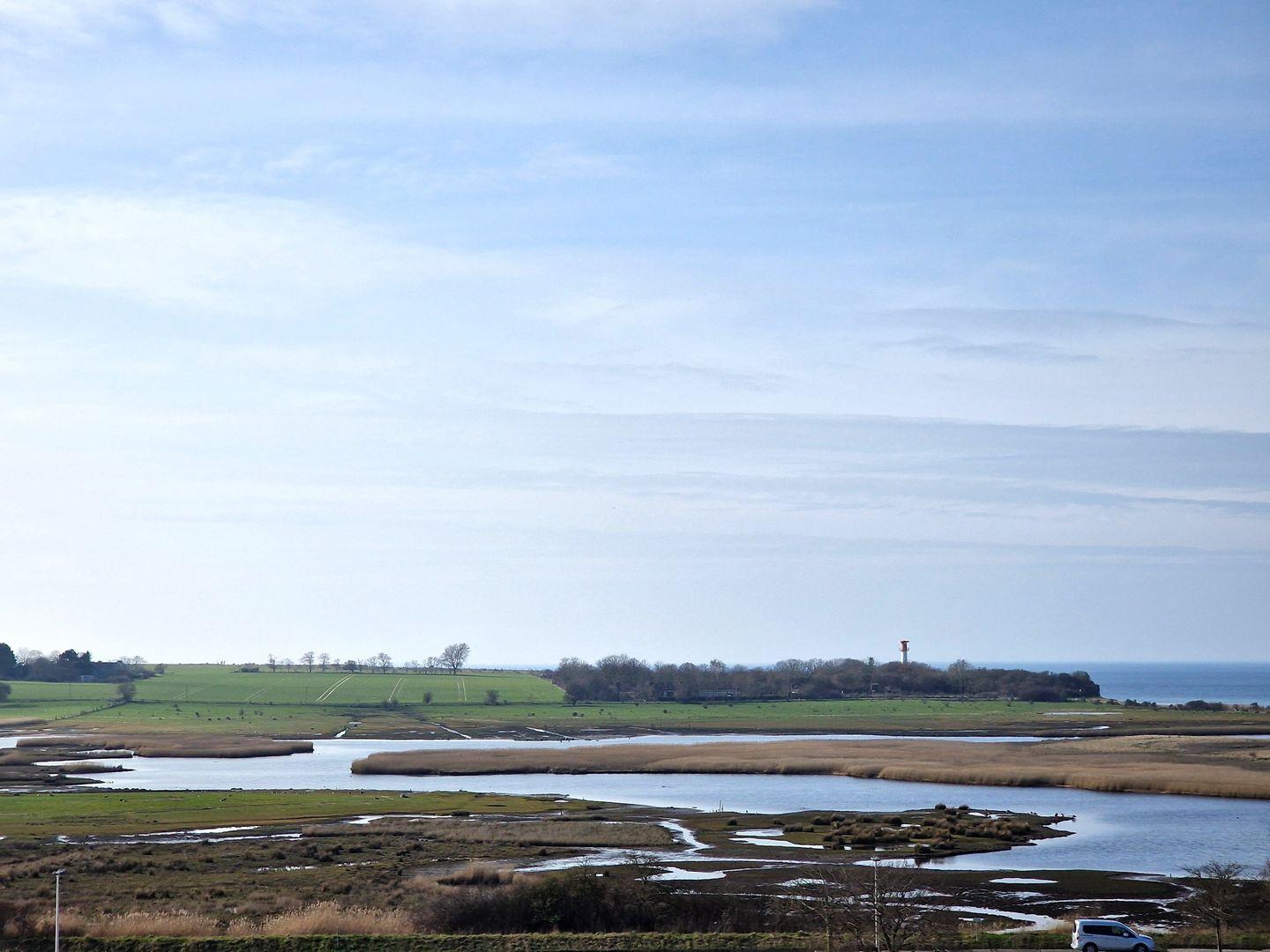 Große Ferienwohnung mit Blick auf Salzwiesen und Ostsee, ideal für erholsame Tage an der Küste.