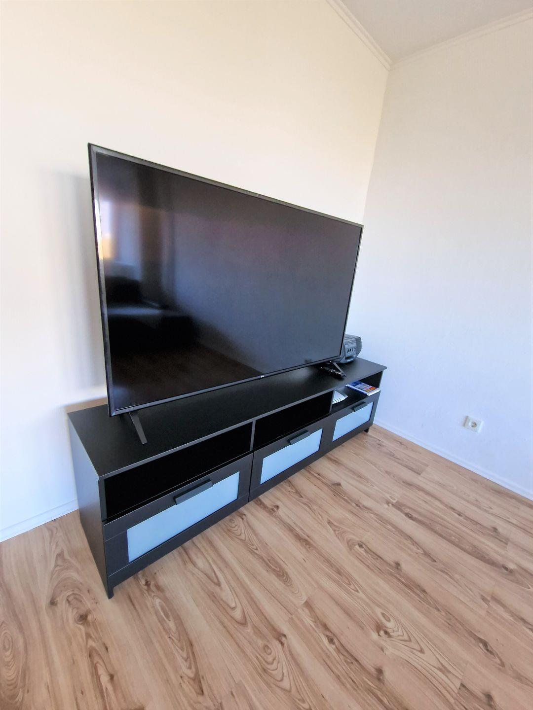 Von dem gemütlichen Ecksofa aus haben Sie einen perfekten Blick auf den großen Flachbildfernseher. Ein kostenloser Internetzugang kann ebenfalls genutzt werden.