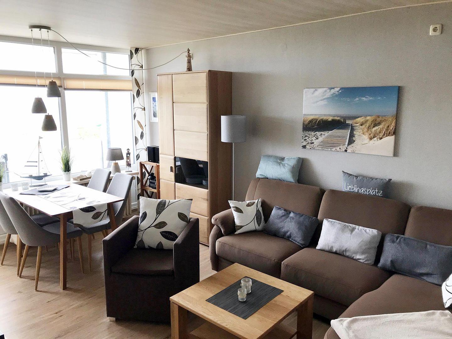 Genießen Sie vom Essbereich einen traumhaften Blick zur Ostsee. Hier finden bis zu 4 Personen Platz. Direkt und offen angrenzend ist der Wohnbereich.