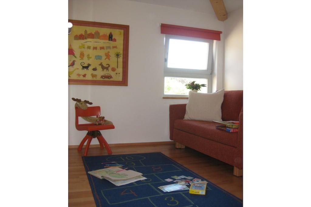 Parterre: (Küche(Herd, Radio, Kochplatte, Wasserkocher, Toaster, Kochherd, Kaffeemaschine, Backofen, Spülmaschine, Kühlschrank, Tiefkühlschrank, Küchenmaschine, Handtücher inklusive), Wohn/Esszimmer(TV, Kaminofen, Herd, Radio, CD-Spieler, Stereoanlage), Schlafzimmer(Doppelbett), Kinderzimmer(Schlafcouch 1 Pers.), Badezimmer(Dusche, Waschbecken, Toilette, Föhn, Handtücher inklusive))