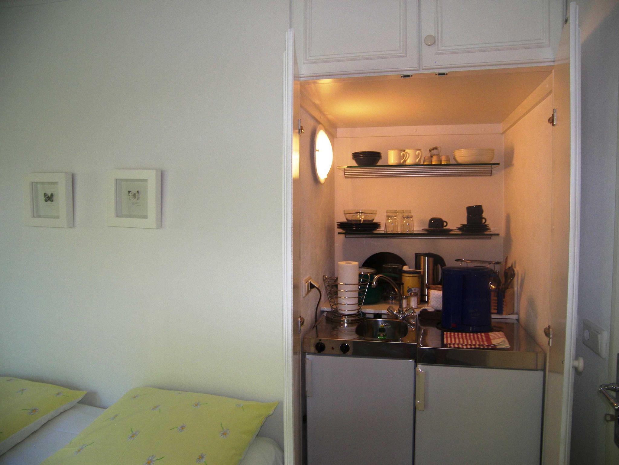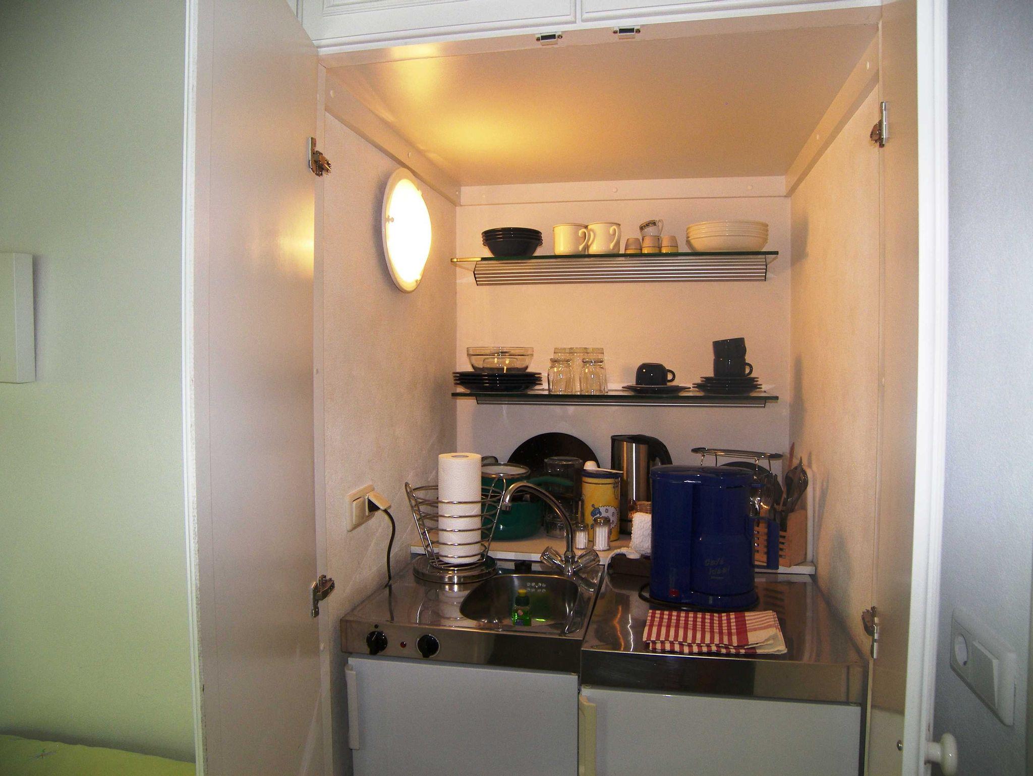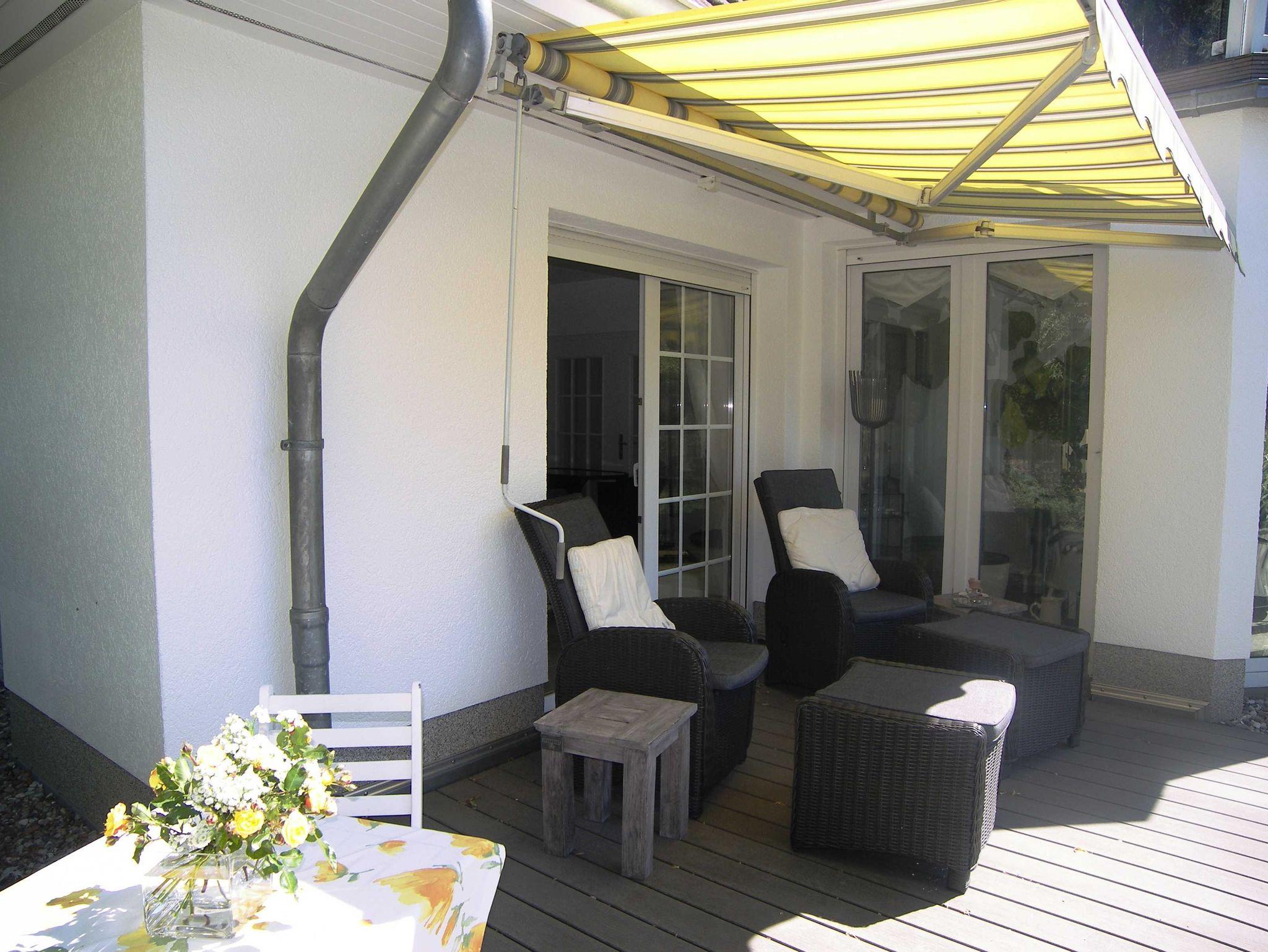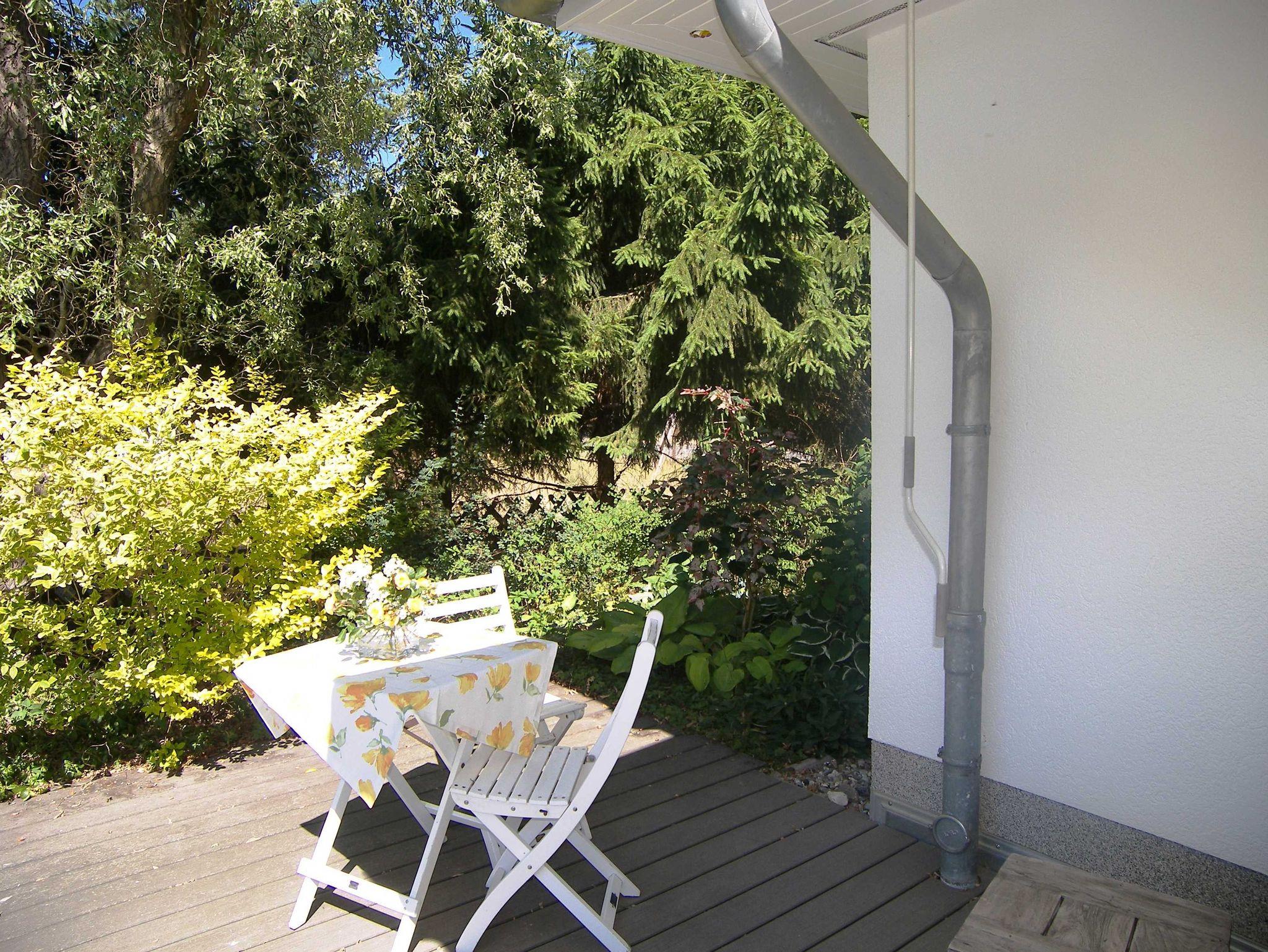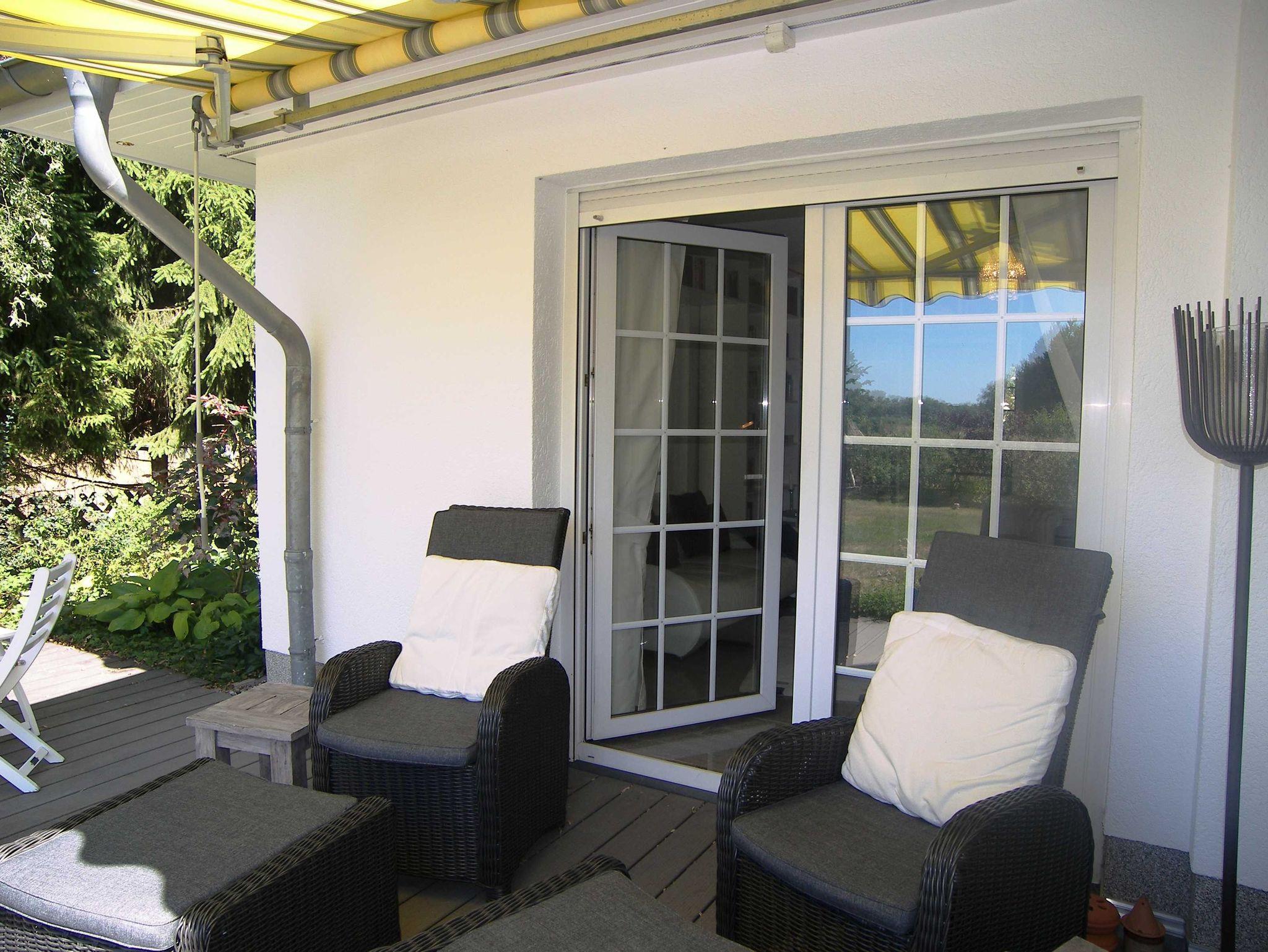 Die gemütliche 2-Raum-Ferienwohnung befindet sich im Erdgeschoss und verfügt über ein Wohnzimmer mit Sitzmöglichkeit, Flachbild-TV, Radio und W-LAN. Im Schlafzimmer gibt es ein Doppelbett, einen Kleiderschrank, Verdunklungsrollos und Insektengitter. Die kleine Pantry-Küche befindet sich ebenfalls im Schlafzimmer und ist mit einem Wasserkocher, Kaffeemaschine, Toaster, Kühlschrank und einer Spüle ausgestattet. Küchenrolle und ein Geschirrhandtuch werden bereitgestellt. Das Bad verfügt über Dusche/WC, Handtuchheizung und einen Haartrockner. Die Bettwäsche ist bereits inklusive. Eine Sitzecke im Garten, sowie eine Terrasse mit Markise stehen zur Verfügung.