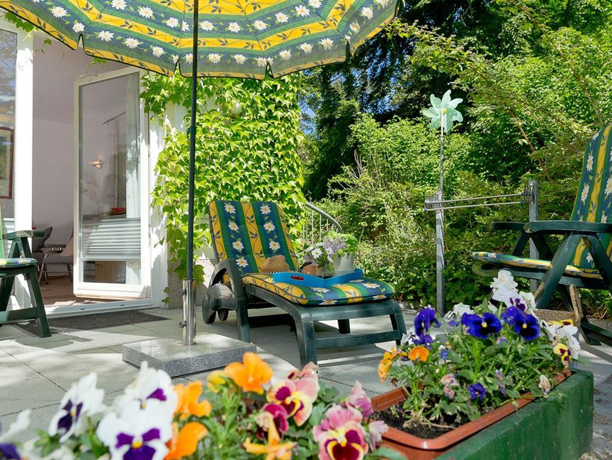 Vom Wohnzimmer erreichen Sie Ihre private Süd-West-Terrasse, die zum Sonnenbaden oder zur abendlichen Spielrunde mit Blick in den Garten einlädt. Grill-Liebhaber kommen ebenfalls auf Ihre Kosten, denn auf der Terrasse ist das Grillen im Grünen selbstverständlich gestattet. Das freundlich eingerichtete Schlafzimmer ist mit einem bequemen Doppelbett (180 x 200cm / zwei getrennte Matratzen) und Plissees an den Fenstern zum Abdunkeln ausgestattet.