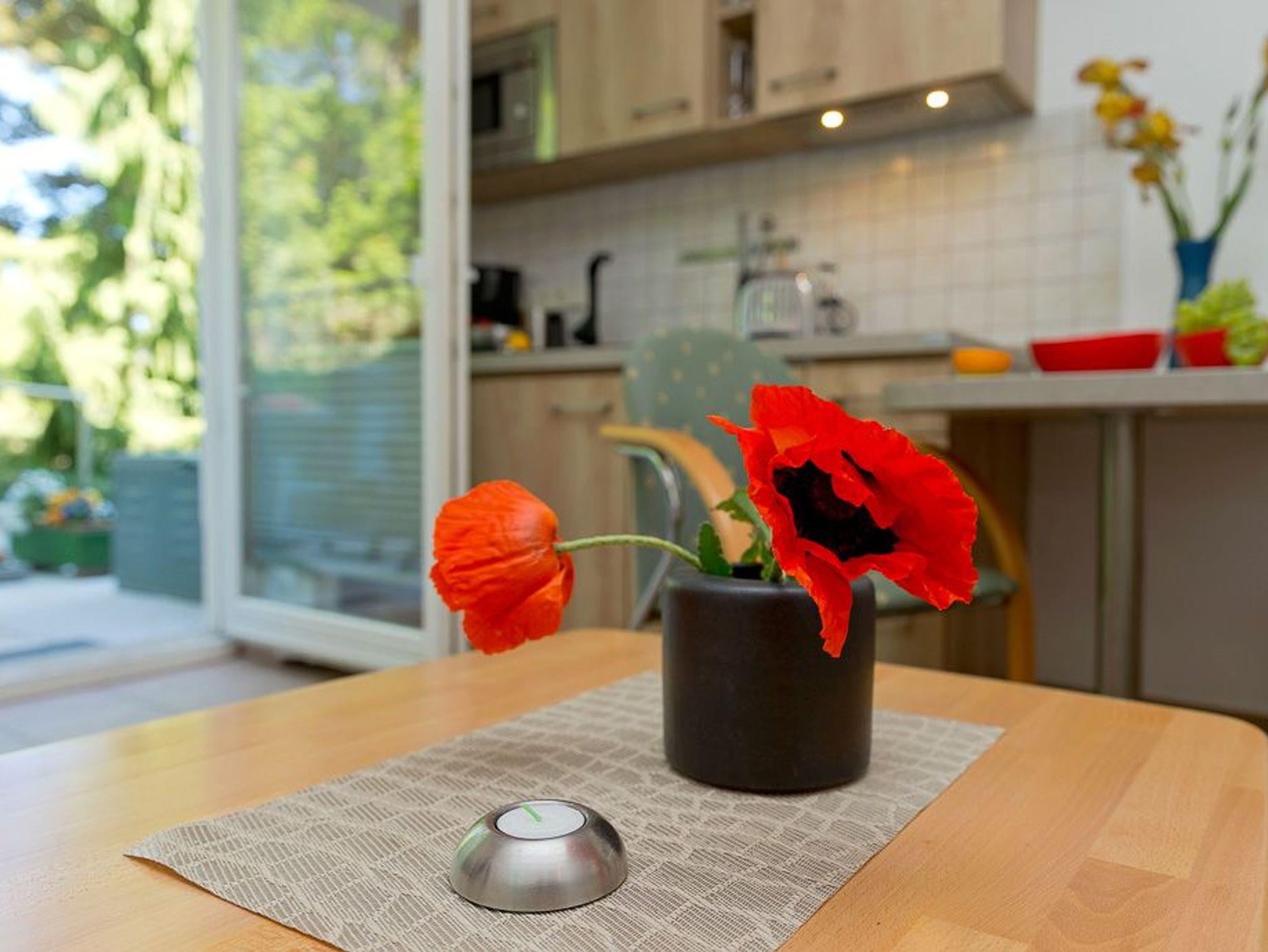 Gemütliches ebenerdiges Appartement mit moderner Küche und Terrasse in Heringsdorf, ideal für erholsamen Urlaub mit Blick ins Grüne.