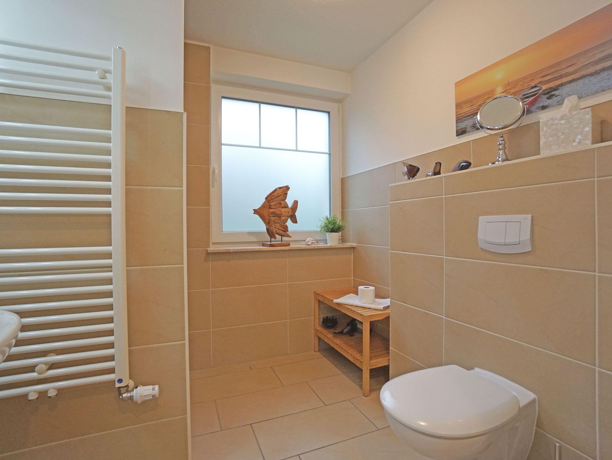 Die Wohnung ist hell gefliest und verfügt in allen Räumen über eine Fußbodenheizung. Ein geräumiges Bad mit Fenster und ebenerdiger Dusche/WC u. Föhn. Alle Fenster haben Plisseejalousien, sowie hochwertige Insektenschutztüren. In der Tiefgarage befindet sich ein kostenloser Stellplatz (bitte nur rückwärts einparken, da die Tiefgarage sehr eng ist). Ein Strandkorb (von Mai bis September) an dem am Haus befindlichen Strandabschnitt steht Ihnen kostenfrei zur Verfügung. Die Wohnung verfügt über einen direkten Strandzugang für seine Gäste.