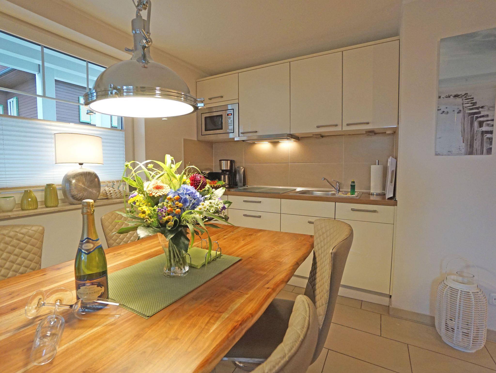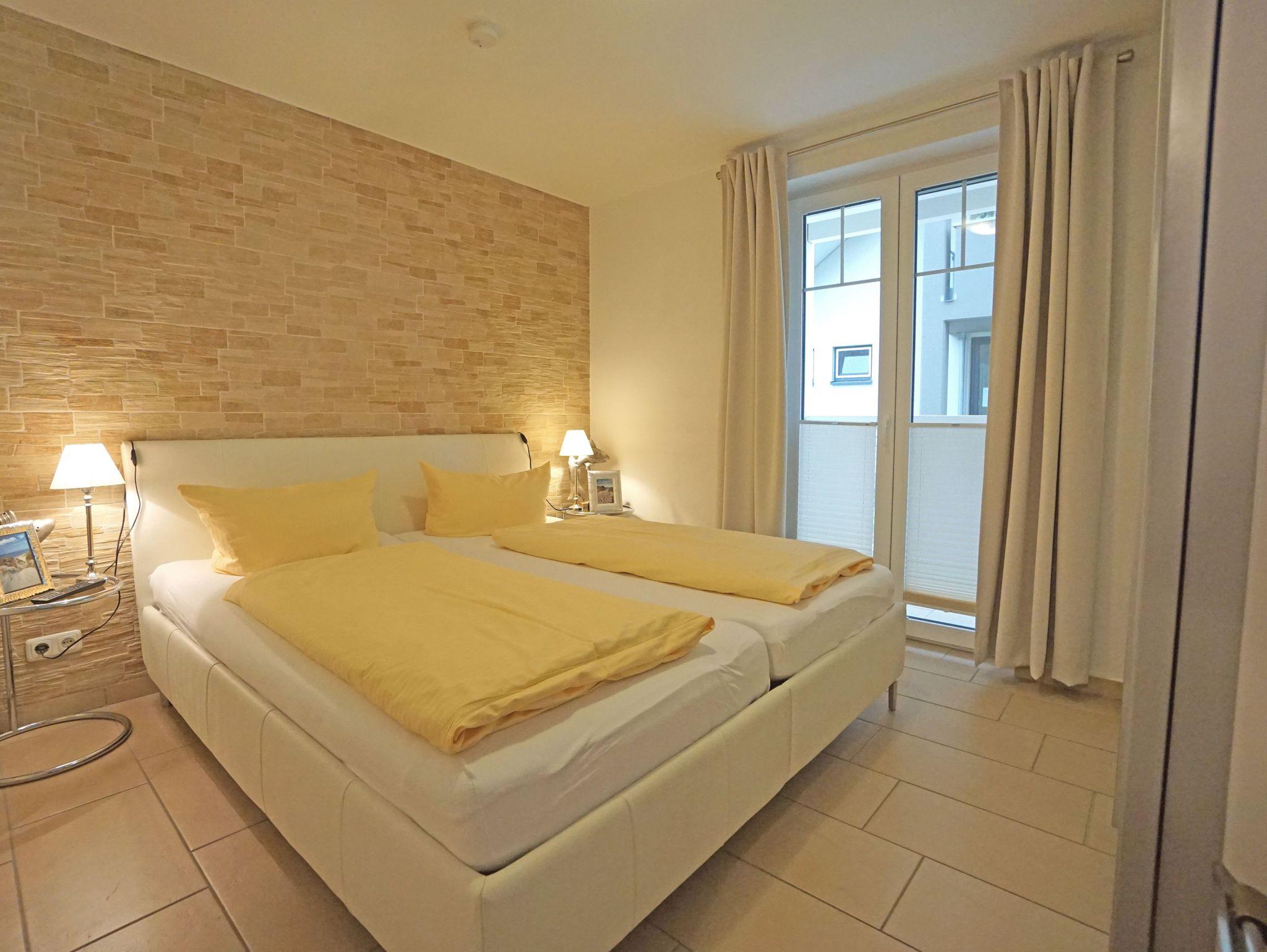 Die Stilvoll eingerichtete 2-Zimmer-Ferienwohnung mit hochwertiger Ausstattung verfügt über drei Balkone. Ein Fahrstuhl im Haus sowie eine Tiefgarage (Stellplätze eng, eingeschränkte Wendemöglichkeit) stehen Ihnen zur Verfügung. Ein kostenfreier WLAN-Zugang kann genutzt werden.