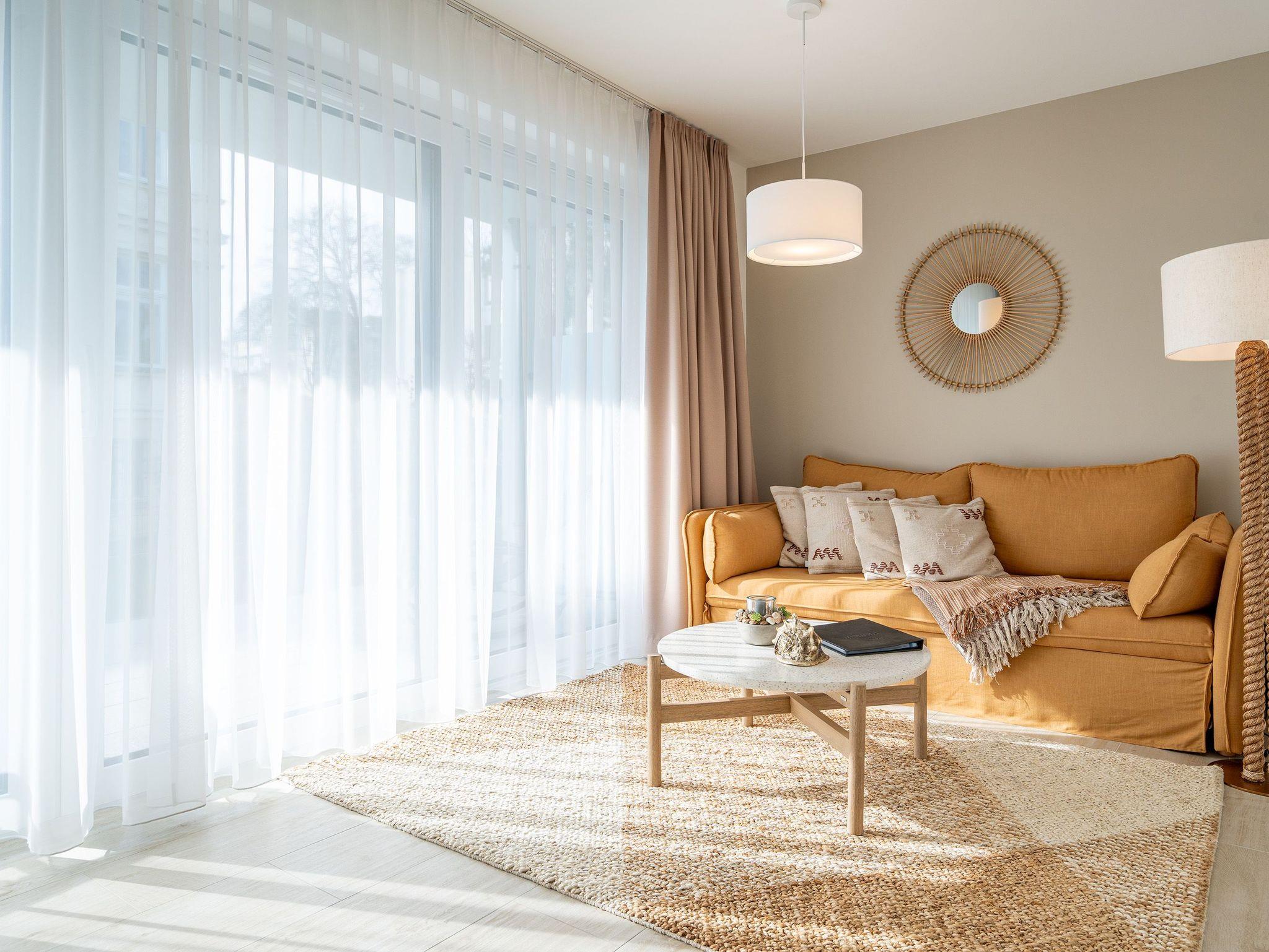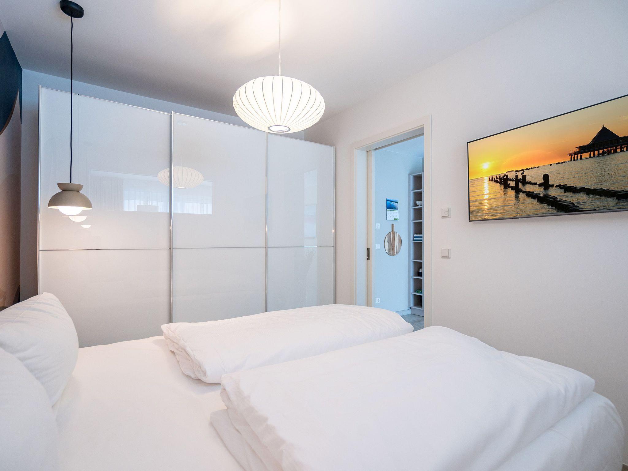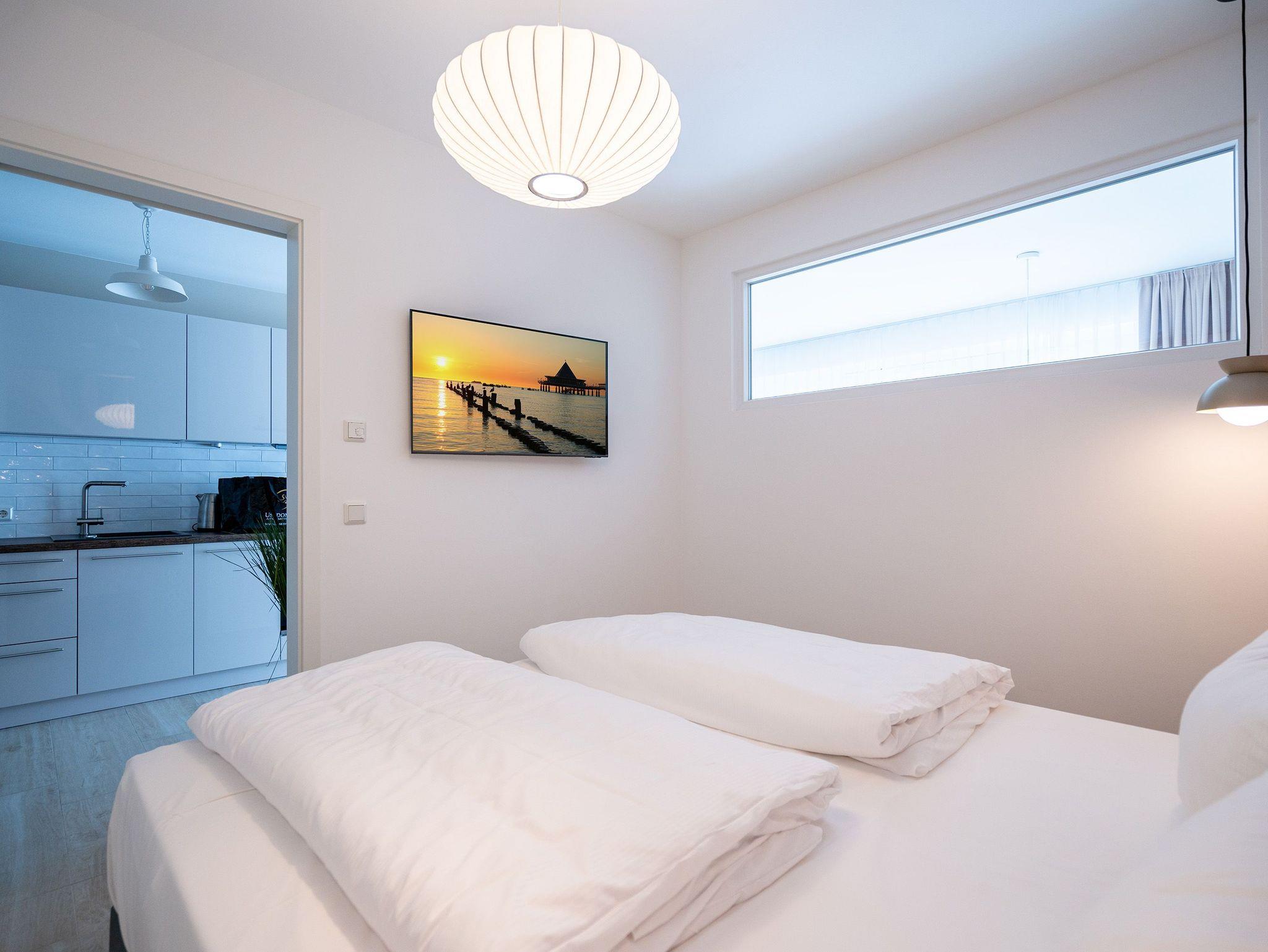 Sie reisen zu zweit oder als kleine Familie ans Meer? Dann verbringen Sie Ihren Urlaub im neuen Quartier am Strand in Seebad Heringsdorf. Das im Juni 2023 fertiggestellte 51 Quadratmeter große 2-Raum-Appartement bietet alles, was Sie für einen erholsamen Urlaub für zwei Erwachsene und ein Kind (bis 15 Jahre) benötigen. Ideal gelegen zwischen Ostsee (100m entfernt) und Ortskern (1.000m) können Sie tagsüber zwischen Sonnenbad und Stadtbummel entscheiden. Auf der 15 Quadratmeter großen Südwest-Terrasse lässt es sich tagsüber auf der Sonnenliege oder am Tisch mit drei Stühlen aushalten. Am Abend warten im Wohnbereich eine Sitzgruppe, die auch als Aufbettungsmöglichkeit für eine dritte Person dient, sowie ein 65-Zoll Flat-TV und ein Kamin darauf, es Ihnen gemütlich zu machen. Der offene Koch-und Essbereich ist umfangreich ausgestattet (Backofen, Induktionskochfeld, Mikrowelle, Spülmaschine, Kühlschrank mit Gefrierfach und Kleinküchengeräte) und bietet jeglichen Komfort beim Zubereiten Ihrer Speisen. Gemeinsame Mahlzeiten lassen sich am Esstisch für vier Personen einnehmen. Verzichten Sie auch im Urlaub nicht auf Ihren erholsamen Schlaf und machen Sie es sich im bequemen Boxspringbett (1,80m x 2,00m) gemütlich. Ein Flat-TV und Stauraum für Ihre Urlaubsgarderobe runden den innenliegenden Schlafbereich ab. Das Highlight bildet die Finnische Sauna, die in das Duschbad mit Waschtisch und WC integriert ist und auch an kühleren Tagen für wohlige Wärme sorgt. Für Ihren PKW steht ein Stellplatz in der hauseigenen Tiefgarage bereit. Bei Ihrer Anreise sind außerdem die Betten bereits bezogen und Handtücher liegen für Sie parat. Kostenfreies W-Lan sowie ein wohnungseigener Abstellraum direkt hinter Ihrem PKW-Stellplatz erleichtern das Abstellen Ihrer Fahrräder. Für den Tag am Strand steht Ihnen in der Zeit von Mitte Mai bis September (je nach Witterung) ein Strandkorb zur Verfügung.