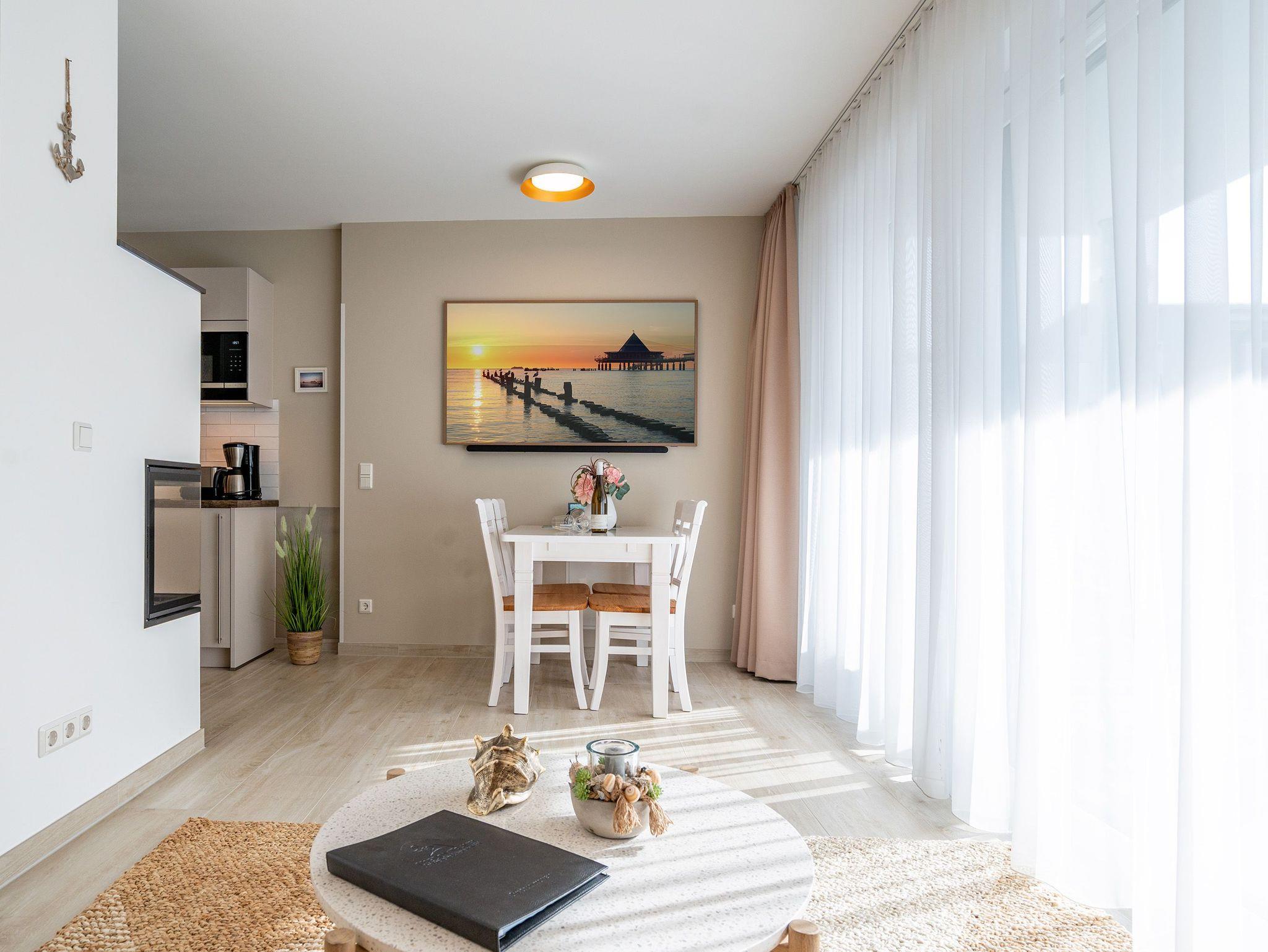 Modernes 2-Zimmer-Appartement in Heringsdorf, nur 60m von der Ostsee entfernt, mit Sauna, Kamin und eigener Terrasse.
