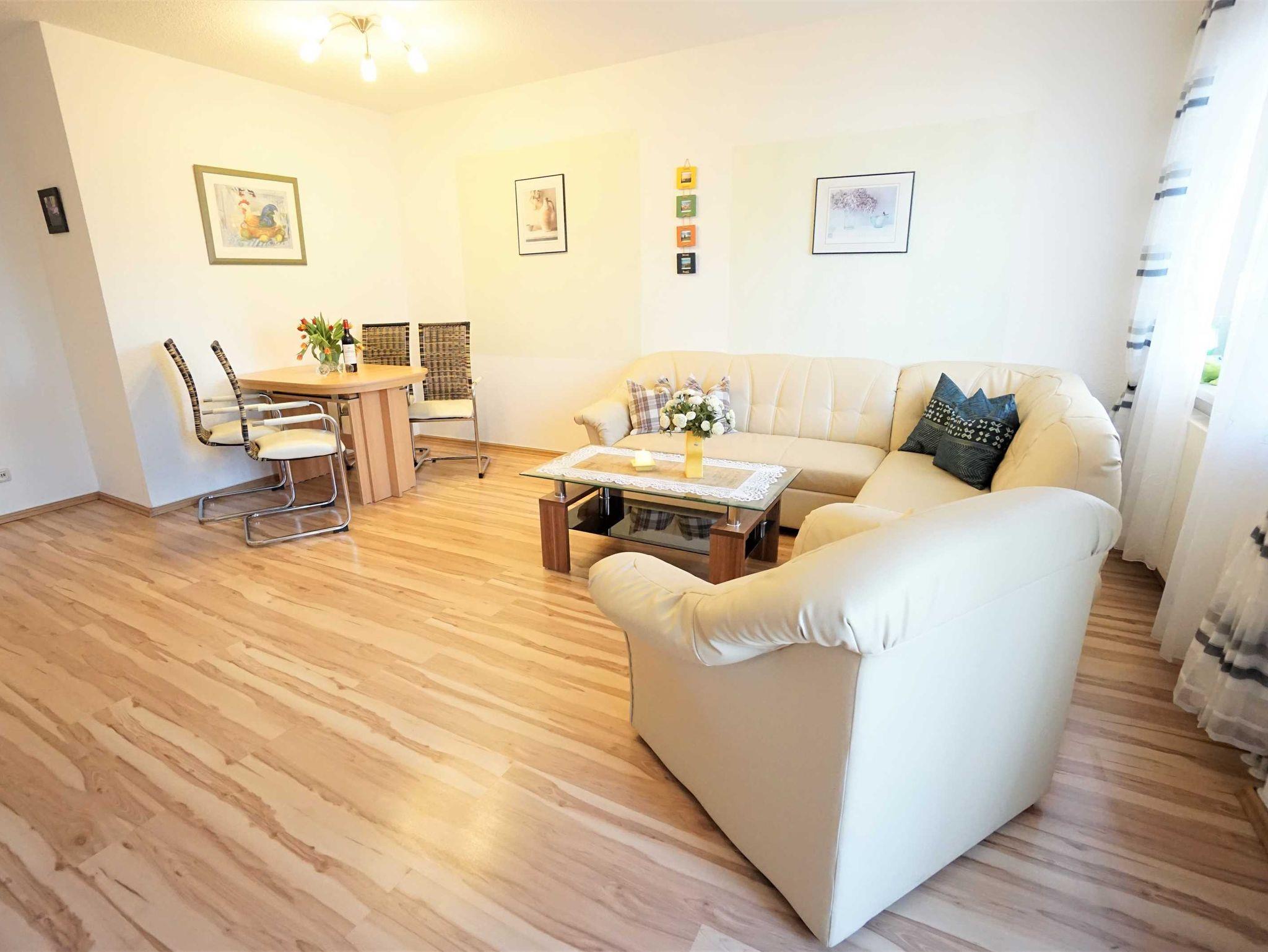 Die für 4 Personen eingerichtete Nichtraucherwohnung liegt im dritten Stock eines größeren Wohnobjektes. Sie besteht aus einem Wohnzimmer mit Balkon, einem Schlafzimmer mit großem Doppelbett und einem weiteren Schlafzimmer mit zwei Einzelbetten, einer separaten Küche und einem Duschbad. Ein Aufzug ist vorhanden, ebenso ein Parkplatz unmittelbar am Eingangsbereich.
