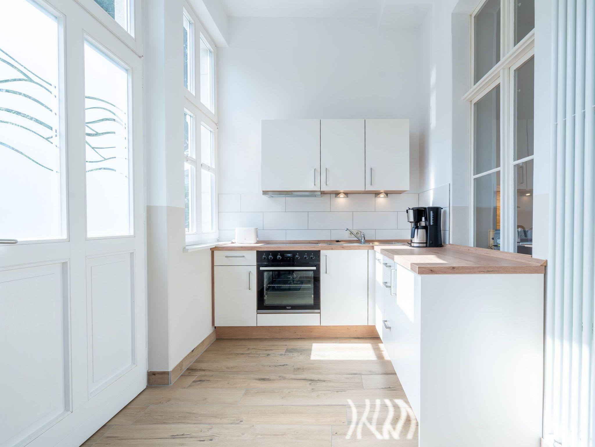 Ideal für Paare oder kleine Familien: Diese 50 m² große Ferienwohnung im Erdgeschoss empfängt Sie mit einem einladenden Wohnbereich, in dem ein Schlafsofa bei Bedarf Platz für eine dritte Person bietet. Das Schlafzimmer mit Doppelbett und TV sorgt für erholsame Nächte. Die verglaste Veranda mit Küchenzeile und Essplatz ist lichtdurchflutet und führt direkt auf die Terrasse, die gleichzeitig als Eingang dient. Das Bad ist mit Dusche und WC ausgestattet. Ein Pkw-Stellplatz am Haus (Nr. 3) steht zur Verfügung.