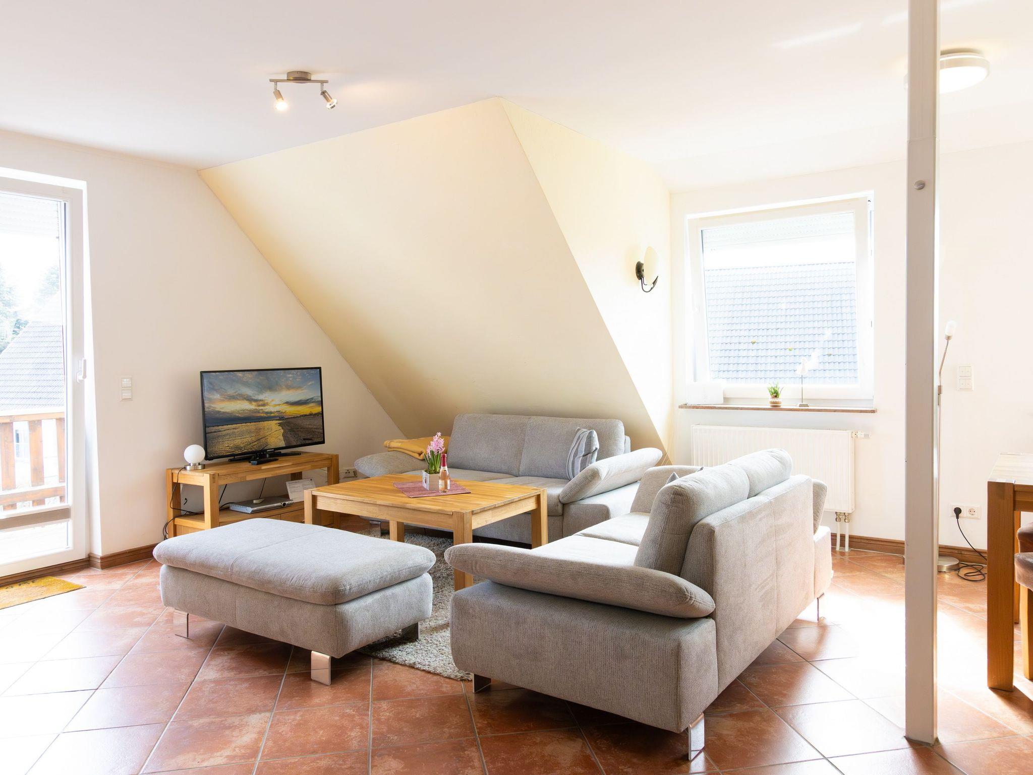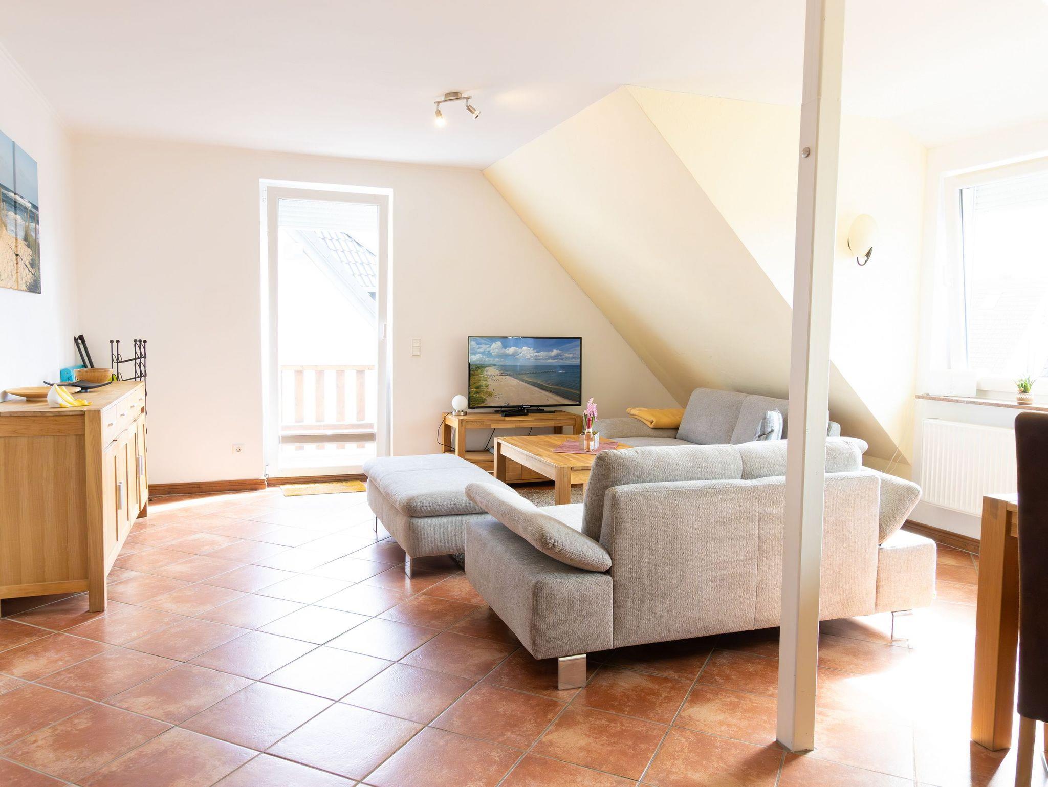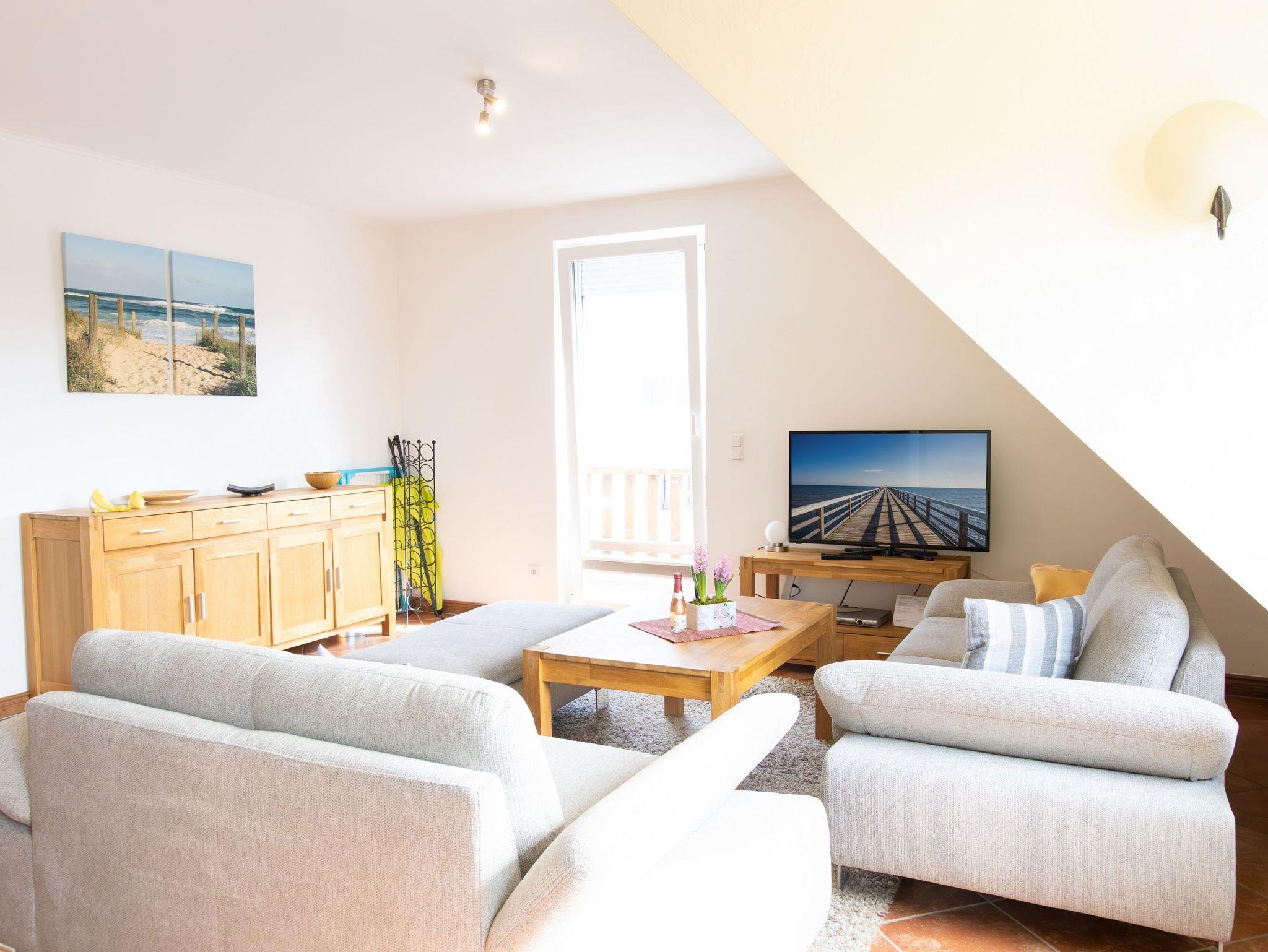 Modern eingerichtete Maisonettewohnung in Heringsdorf mit Balkon und kostenfreiem WLAN für entspannte Urlaubstage.
