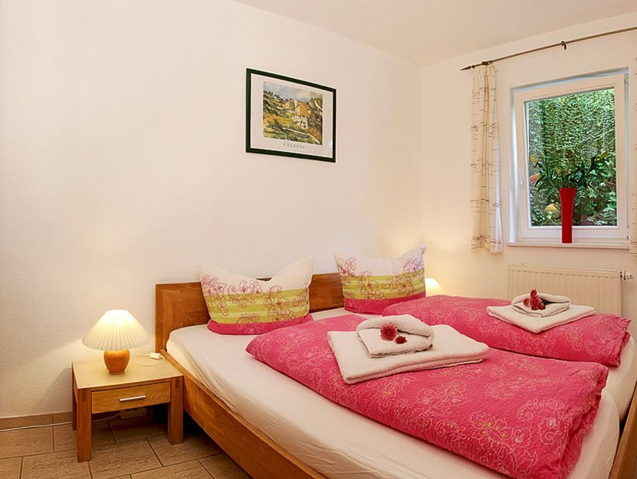 Vom Wohnzimmer erreichen Sie Ihre private Nord-Ost-Terrasse, die zum Erholen oder zur abendlichen Spielrunde mit Blick in den Garten einlädt. Grill-Liebhaber kommen ebenfalls auf Ihre Kosten, denn auf der Terrasse ist das Grillen im Grünen selbstverständlich gestattet. Das freundlich eingerichtete Schlafzimmer ist mit einem bequemen Doppelbett (180 x 200cm / zwei getrennte Matratzen) ausgestattet.