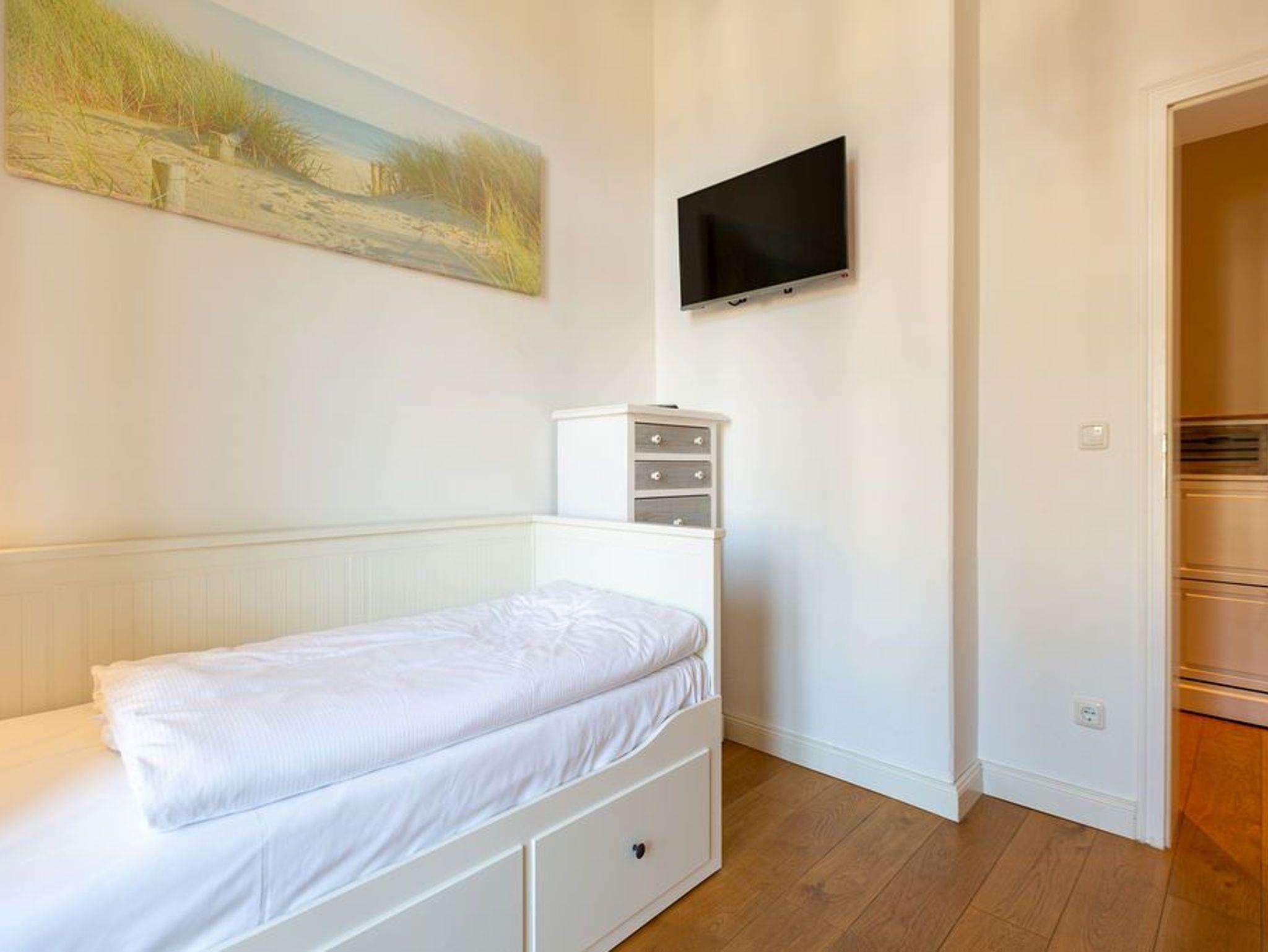 Freuen Sie sich auf eine erholsame Auszeit in der 3-Raum-Ferienwohnung Nr. 09 (79 qm) in der 1. Etage der charmanten Villa Saphira. Die Wohnung bietet Platz für bis zu 4 Personen und 1 Kleinkind (bis 3 Jahre) und überzeugt durch ihre stilvolle Einrichtung, eine Loggia mit Promenadenblick und einen eingeschränkten Meerblick durch die Begrünung. Der helle Wohnbereich ist mit einer gemütlichen Sitzgruppe, einem Kaminofen und einem Flat-TV ausgestattet und lädt zu entspannten Stunden ein. Direkt angrenzend finden Sie die charmante Loggia mit Küchenzeile, Essplatz und einem wunderschönen Blick zur Promenade. Die beiden Schlafzimmer bieten höchsten Schlafkomfort: Ein Schlafzimmer verfügt über zwei Einzelbetten (0,80 m x 2,00 m), Flat-TV und Zugang zum sonnigen Südbalkon (ca. 7 qm). Das zweite Schlafzimmer ist mit einem großzügigen Doppelbett (1,80 m x 2,00 m) und ebenfalls einem Flat-TV ausgestattet. Das moderne Badezimmer mit Dusche und WC rundet das Komfortangebot ab. Kostenloses WLAN und ein eigener PKW-Stellplatz am Haus stehen Ihnen ebenfalls zur Verfügung. Für Familien stellen wir auf Wunsch ein Kinderreisebett (ohne zusätzliche Matratze und Bettzeug) und einen Hochstuhl gegen einen kleinen Aufpreis bereit. Damit Sie sich von Anfang an wohlfühlen, sind die Betten bei Ihrer Ankunft bereits bezogen, und eine Erstausstattung mit Handtüchern liegt für Sie bereit. Genießen Sie die perfekte Kombination aus Komfort, Eleganz und einer hervorragenden Lage in der Villa Saphira. Wir freuen uns darauf, Sie willkommen zu heißen!