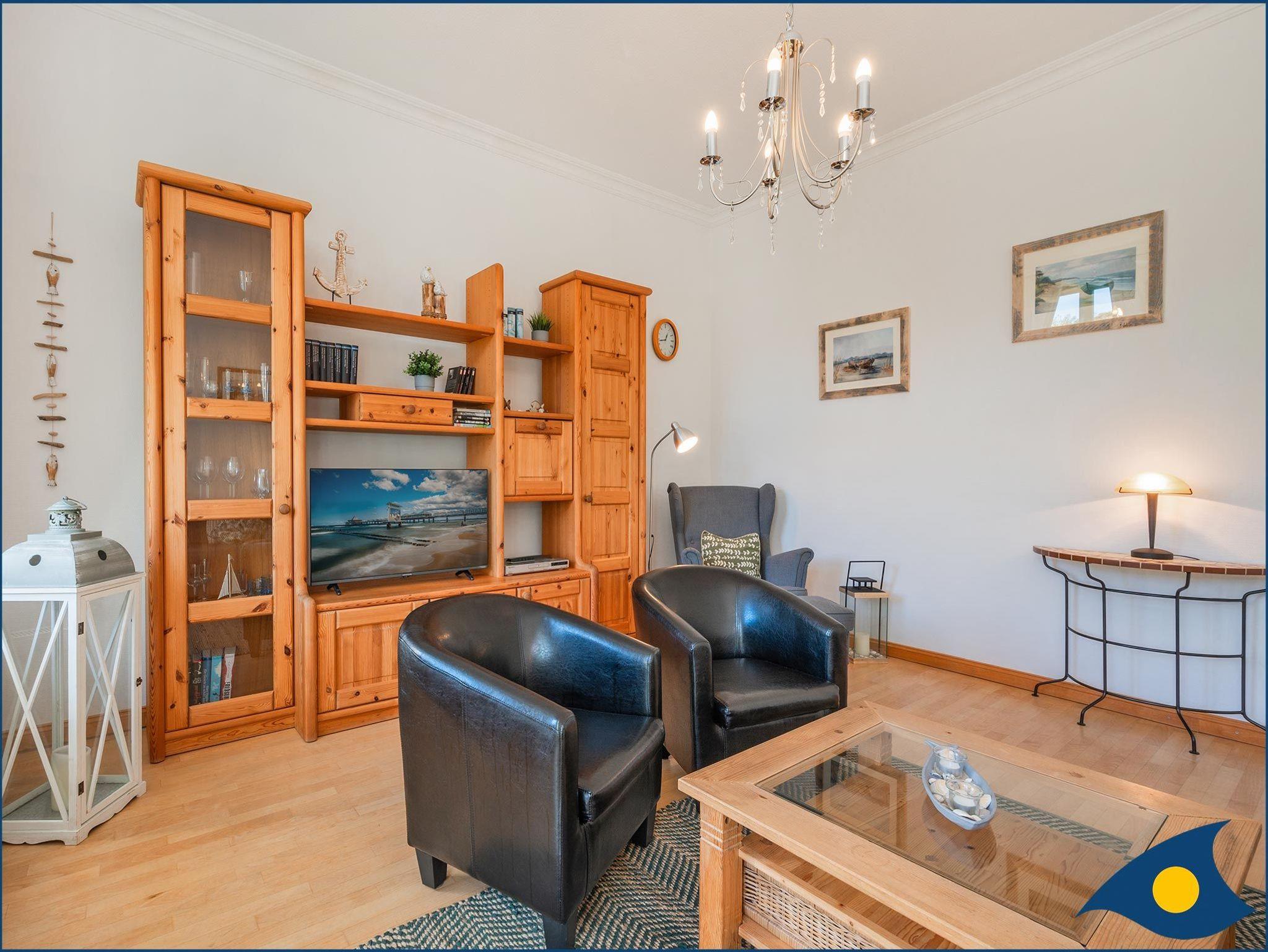 Vom großzügigen Wohnzimmer gelangen Sie auf den Balkon, auf dem zwei Personen bequem Platz finden. Ein Schlafsofa im Wohnzimmer bietet die Möglichkeit der Aufbettung für die 3. und 4. Person.