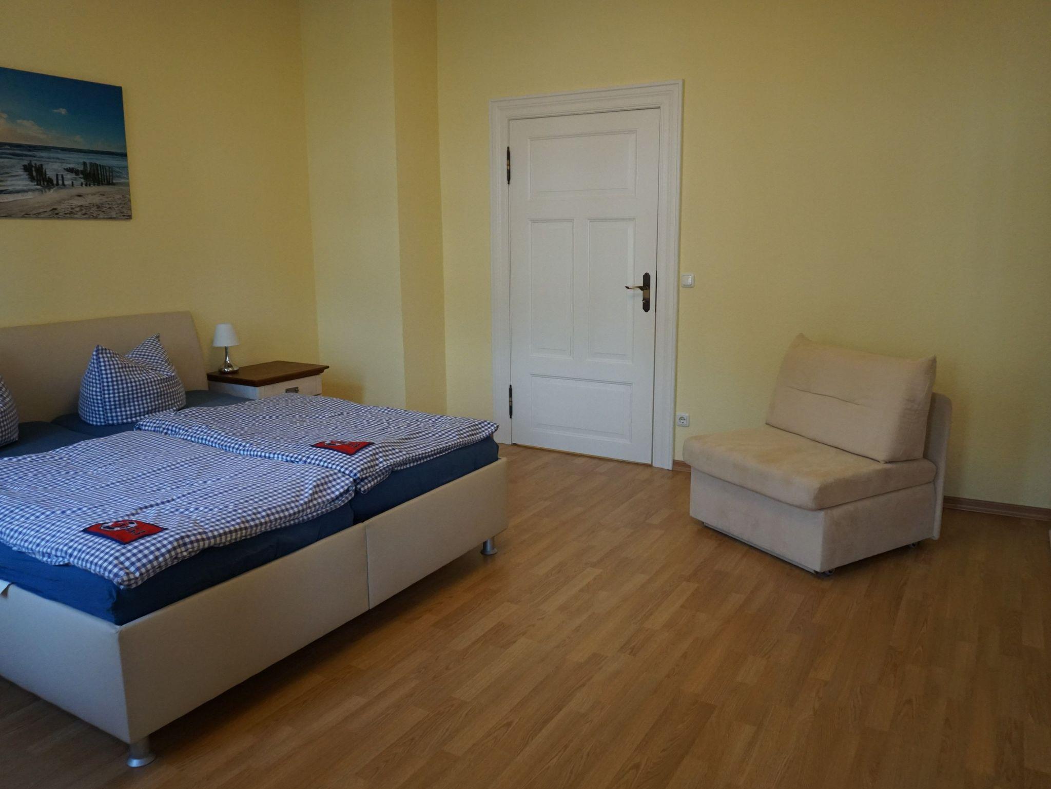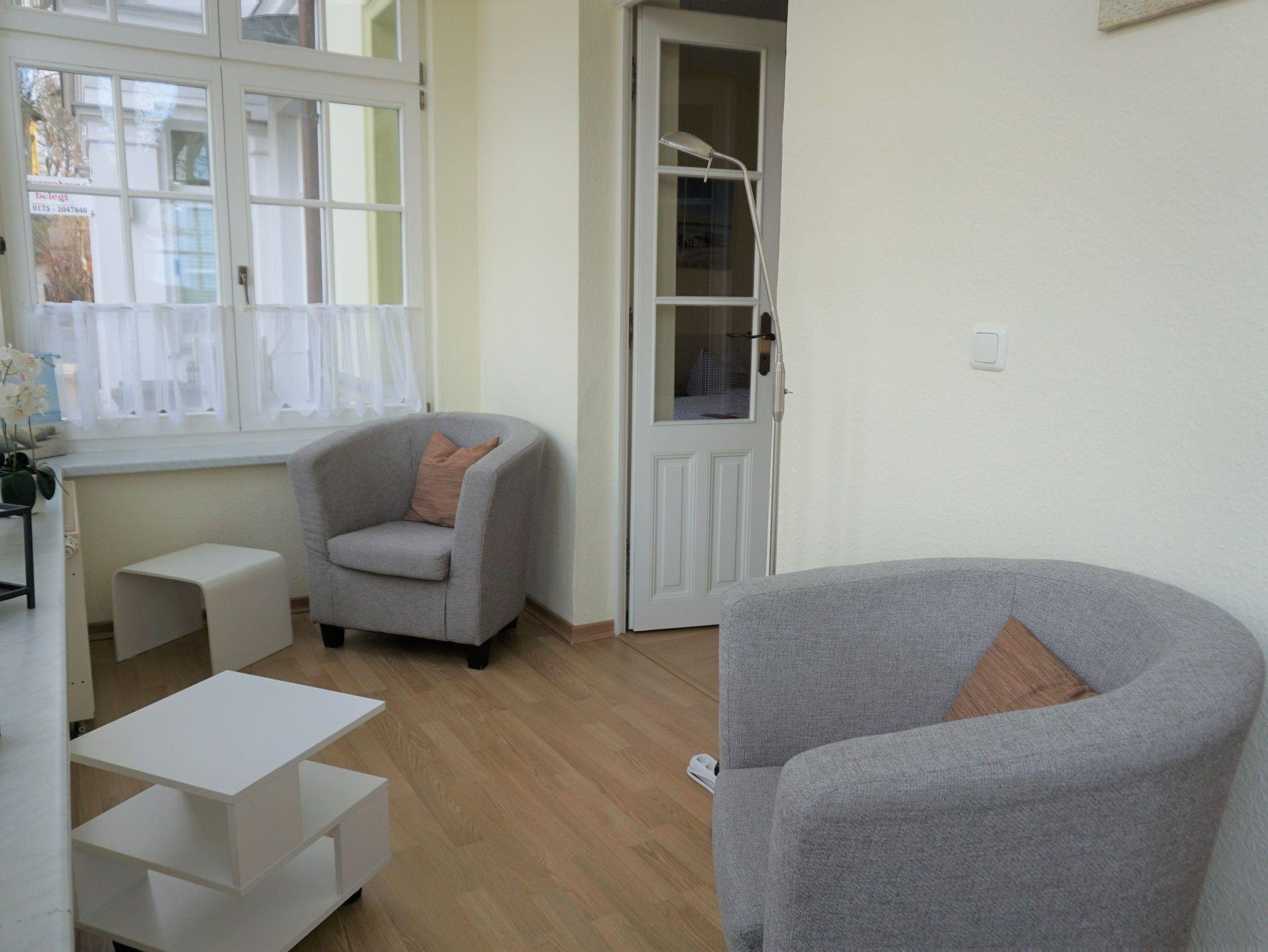 Die Ferienwohnung Usedom im Erdgeschoß ist mit 74m² sehr geräumig. Für ein gutes Wohnklima sorgt die Deckenhöhe in der Villa von 3,50m. Die Wohnung verfügt über eine voll ausgestattete Küche mit Geschirrspüler, Herd, Kühlkombination, eine große Diele, ein Abstellraum, ein Bad mit ebenerdiger Dusche, ein großes Schlafzimmer mit Doppelbett und einem großen Kleiderschrank, sowie einem Schlafsessel. Ein gemütliches Wohnzimmer mit großer Ledercouch mit Schlaffunktion, welche 1,60m breit ist und eine Komfortmatratze besitzt. Zusätzlich finden Sie einen Essbereich, eine große Veranda mit Stil der Bäderarchitektur zum Relaxen. Draußen gibt es Terrasse für Sie. Ein Parkplatz befindet sich direkt hinter der Villa Usedom Glück.