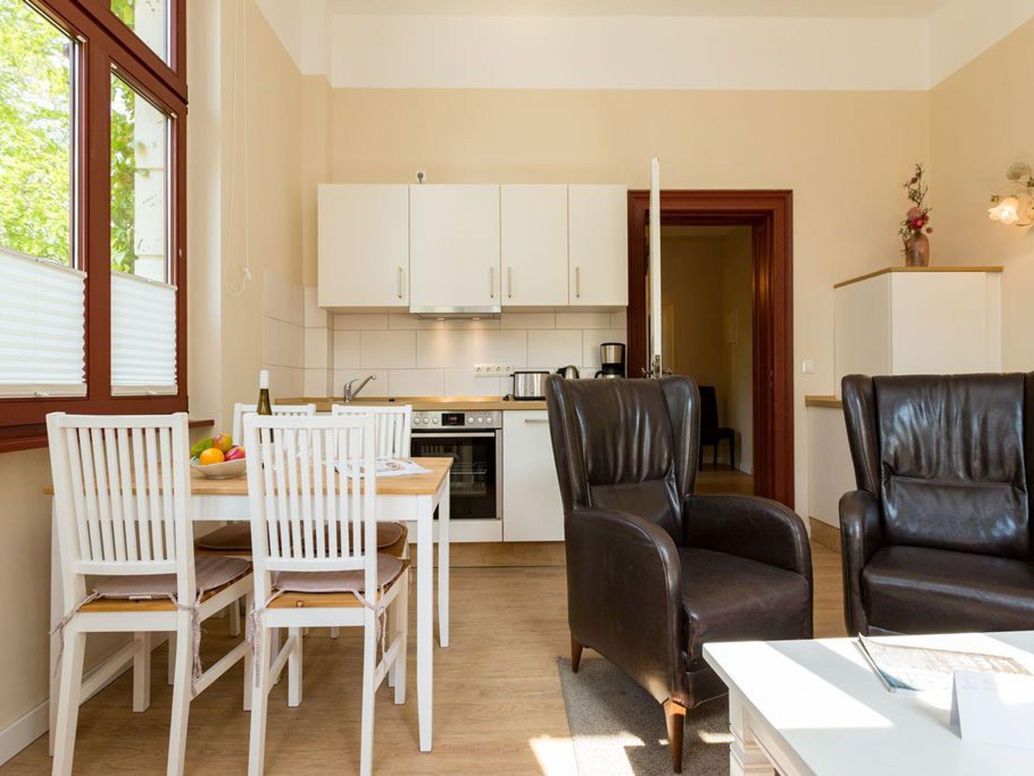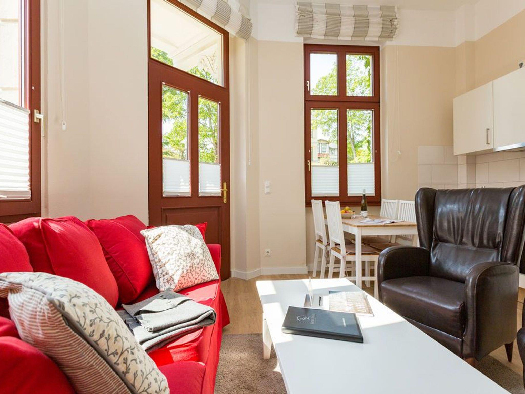 Diese traumhafte 3-Raum-Ferienwohnung begrüßt Sie Hochparterre im Kaiserbad Heringsdorf! Mit einer großzügigen Fläche von 60 qm bietet sie ausreichend Platz für bis zu 4 Personen und lädt zu einem unvergesslichen Urlaub ein. Das Wohnzimmer ist der perfekte Ort, um gemütliche Abende zu verbringen. Hier finden Sie eine bequeme Sitzgruppe und einen Fernseher, der zum Entspannen und Ausruhen einlädt. Die angrenzende Küchenzeile ist mit allem ausgestattet, was Sie zum Kochen und Zubereiten köstlicher Mahlzeiten benötigen. Ein Essplatz rundet das Wohnzimmer ab und schafft einen gemütlichen Raum für gemeinsame Mahlzeiten. Die Ferienwohnung verfügt über zwei Schlafzimmer, die Ihnen einen erholsamen Schlaf garantieren. Neben einem komfortablen Doppelbett im ersten Schlafzimmer, erwarten Sie im zweiten Schlafzimmer zwei Einzelbetten (0,90m x 2,00m). Egal ob Sie als Paar reisen oder mit Freunden, hier finden Sie den perfekten Rückzugsort. Das Badezimmer ist mit einer Dusche und einem WC ausgestattet. Darüber hinaus verfügt die Wohnung über eine kleine Terrasse, auf der Sie entspannte Momente im Freien verbringen können. Für Ihren Komfort sind die Betten bei Ihrer Anreise bereits bezogen und Handtücher liegen für Sie bereit (Erstausstattung). Darüber hinaus steht Ihnen unser kostenfreies WLAN-Netzwerk im gesamten Haus zur Verfügung. Ein weiteres Highlight ist der PKW-Stellplatz direkt am Haus.