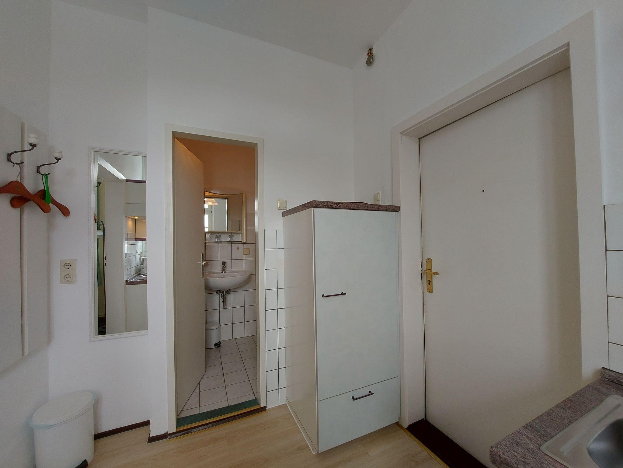 Die Ferienwohnung 9 befindet sich im Obergeschoss des Hauses und ist ca. 30m² groß. Sie teilt sich auf in ein Eingangsbereich mit einer Küche, kombinierten Wohn- und Schlafraum, sowie Badezimmer. Die Küche ist ausgestattet mit Herd, Backofen, Kühlschrank, Mikrowelle, Kaffeemaschine, Wasserkocher und Toaster. Das kombinierte Wohn- und Schlafzimmer verfügt über eine gemütliches Doppelbett, Sessel, Essbereich und Flachbildfernseher. Das Badezimmer ist mit einer Dusche und Haartrockner ausgestattet.