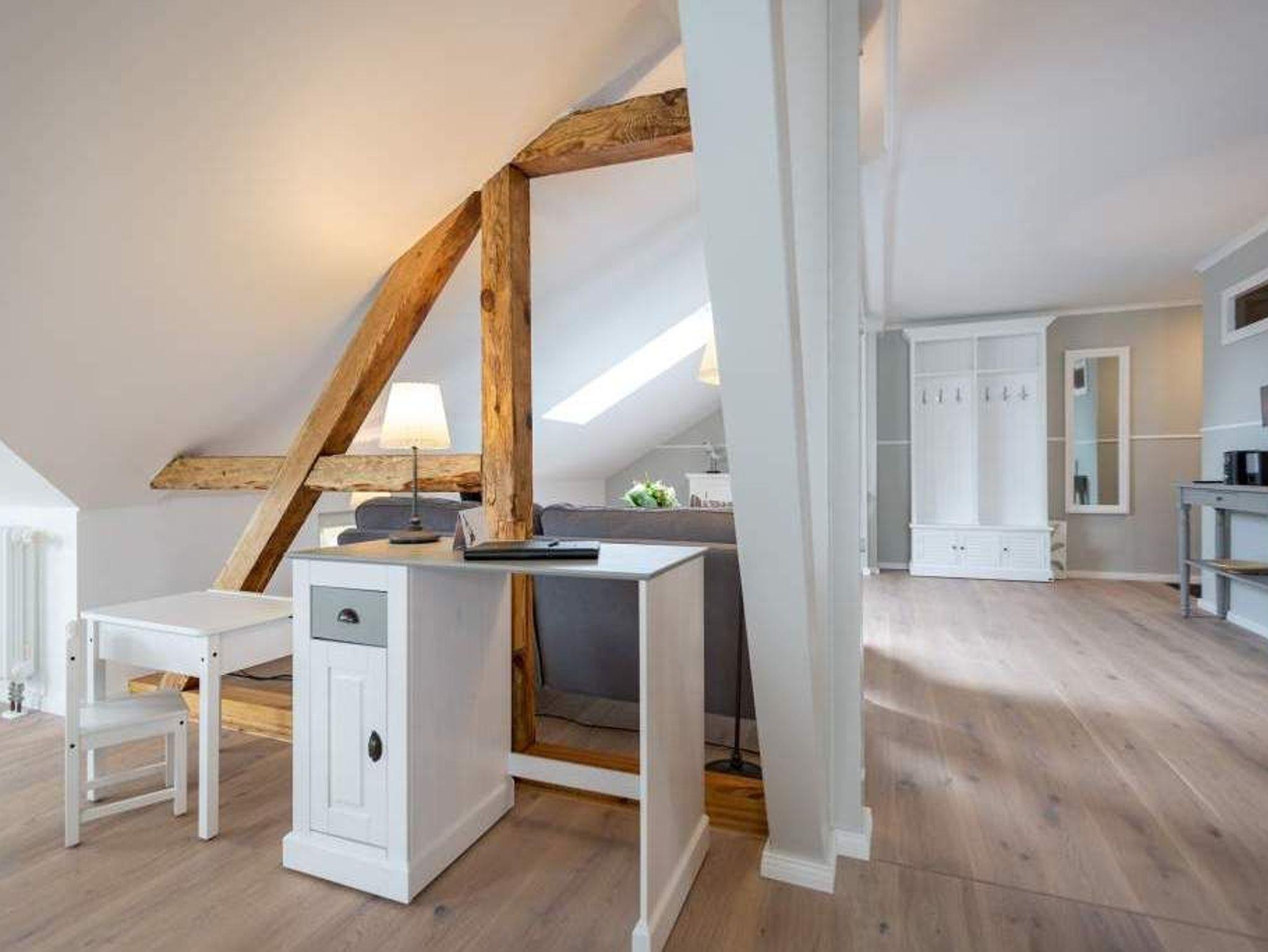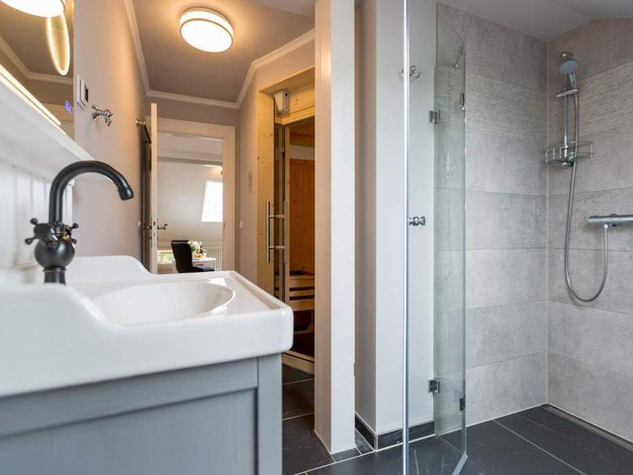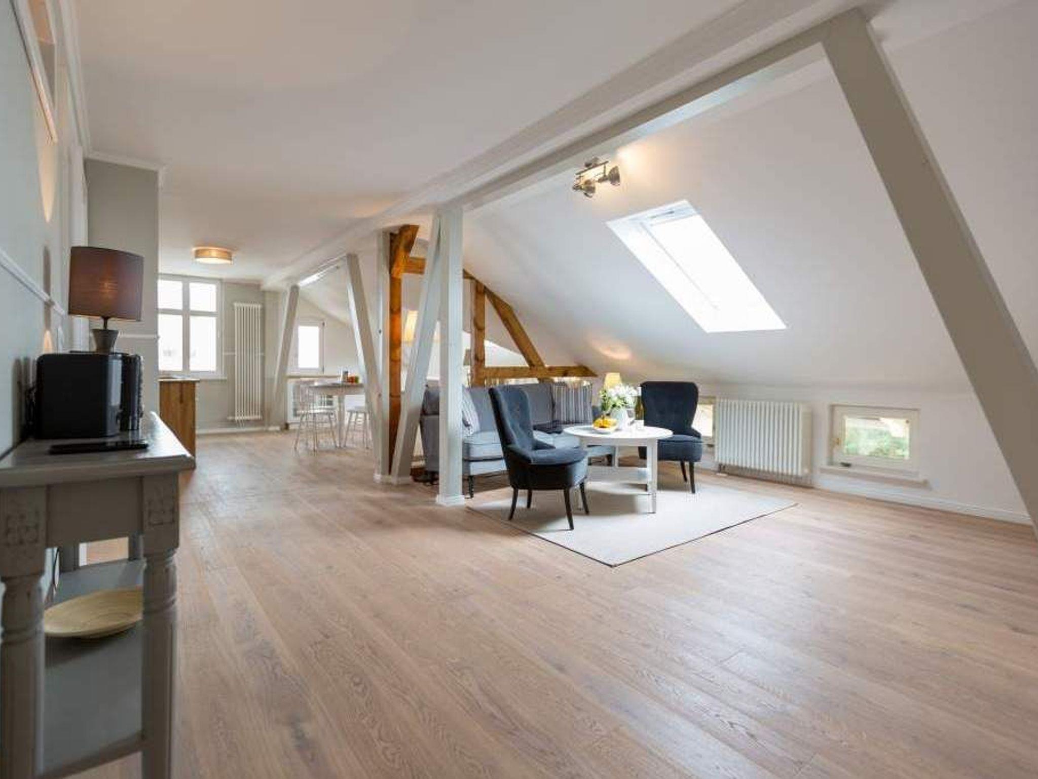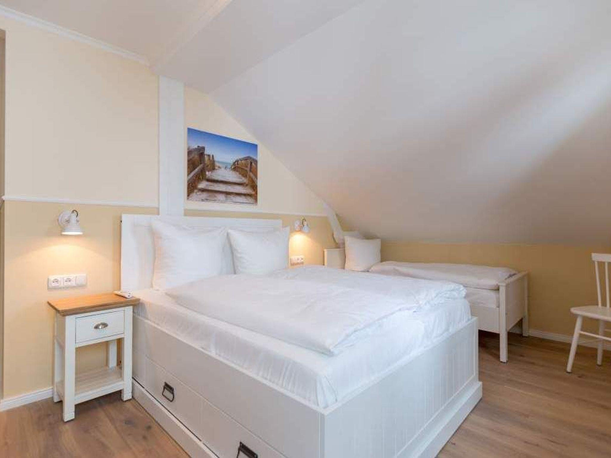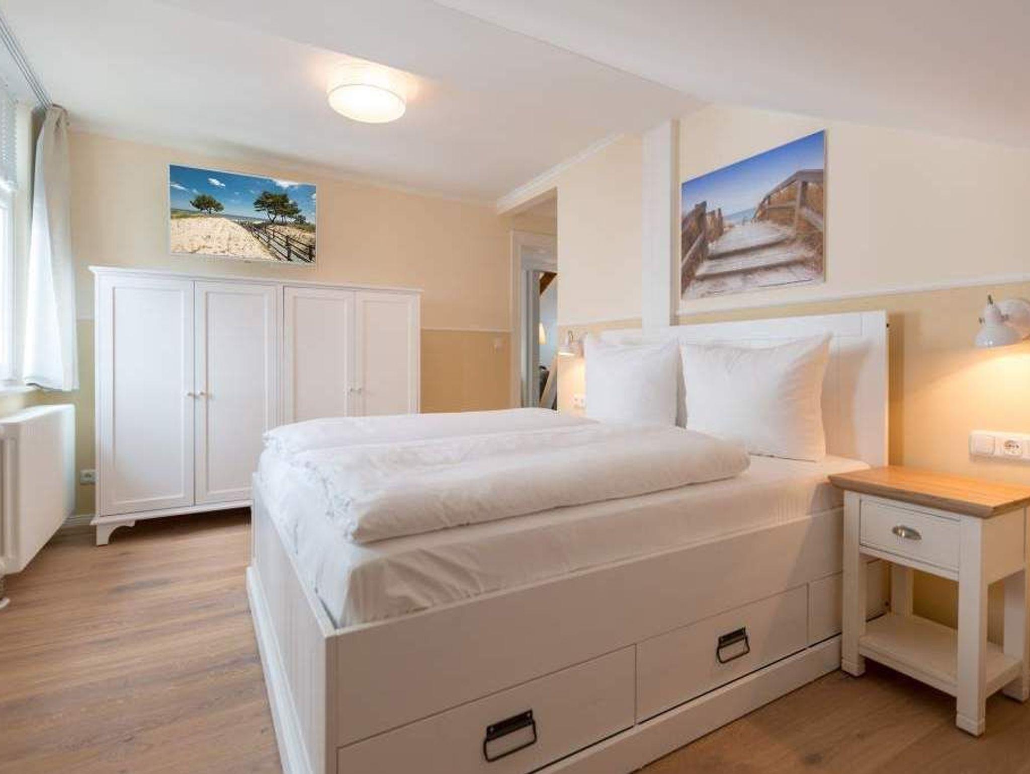 Großzügig und absolut strandnah, stylisch und absolut gemütlich ? die Wohnung 11 mit Meerblick im Dachgeschoss der wunderschön sanierten Bädervilla Saphira verspricht Urlaub der Extraklasse. In den drei Räumen ist Platz; viel Platz für bis zu 5 Personen und ein Kleinkind (bis 3 Jahren im Kinderreisebett). Der lichtdurchflutete Erker ist Küche und Ess-Zimmer in einem. Voll ausgestattet mit Herd, Kühlschrank, Spülmaschine, Kaffeemaschine, Toaster und Wasserkocher ist sie der ideale Ort zum Kochen und Beisammensein. Der stylische runde Tisch ist groß genug für alle auszeithungrigen Esser. Das offene Wohnzimmer ist groß und stilvoll eingerichtet. Die bequeme Sofa-Sitzgruppe eignet sich bestens zum Fernsehschauen. In der Wohnung 11 stehen Ihnen zwei Schlafzimmer zur Verfügung. Alle zwei sind hell und freundlich, haben einen Flat-TV und einen Kleiderschrank. Maritimes Flair durchzieht die Räume. Schlafzimmer eins ist mit einem Doppelbett (1,80 m x 2,00 m) ausgestattet und hat einen Zugang zum Südbalkon (ca.5 qm). Schlafzimmer zwei verfügt über ein Doppelbett (1,60 m x 2,00 m) und ein Einzelbett (0,80 m x 2,00 m). Auf Wunsch stellen wir für unsere kleinen Gäste ein Kinderreisebett (ohne zusätzliche Matratze [&] Bettzeug) und einen Kinderhochstuhl ( gegen einen Aufpreis) zur Verfügung. Das moderne Bad mit Tageslicht verfügt über eine Dusche, Dampfsauna und ein WC. Kommen Sie an und schalten Sie ab. Denn Ihre Betten sind bereits bezogen und Handtücher liegen bereit. Der Pkw-Parkplatz (Nr.11) befindet sich am Haus. Das WLAN ist kostenfrei.