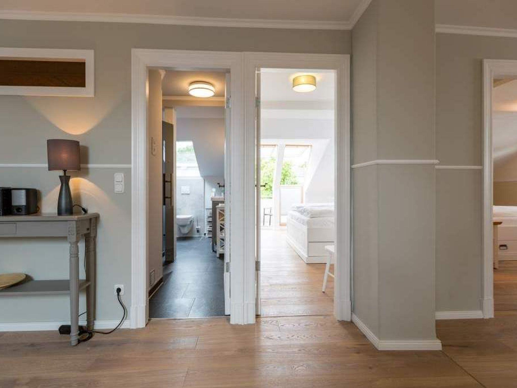 Die Villa Saphira Wohnung 11 bietet strandnahen Komfort und Meerblick in stilvollem Ambiente für erholsame Urlaubstage.