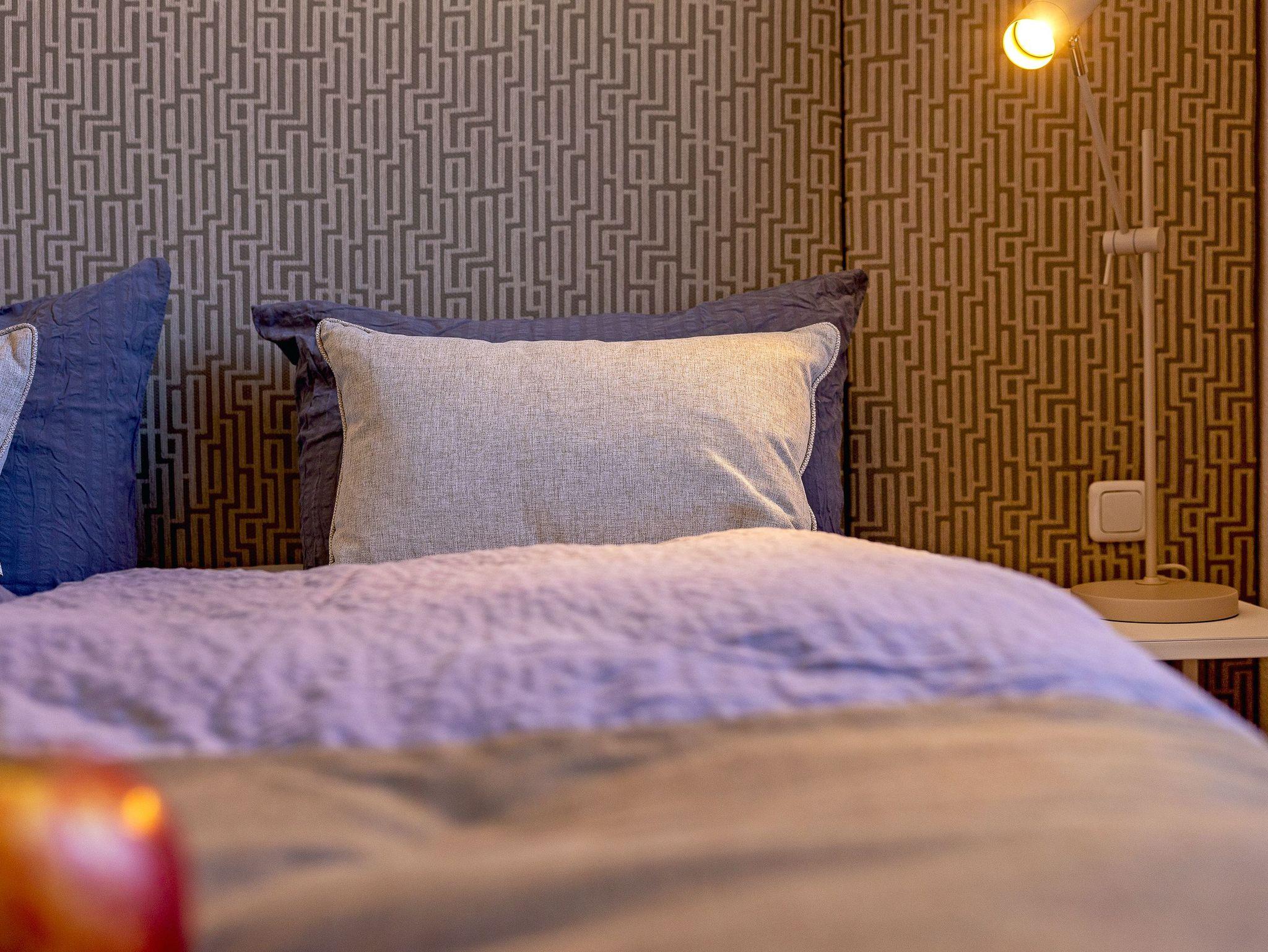 Das Schlafzimmer verfügt über ein komfortables Boxspringbett (160 x 200 cm) für eine erholsame Nacht und bietet durch den Kleiderschrank genügend Stauraum für Ihre Garderobe.