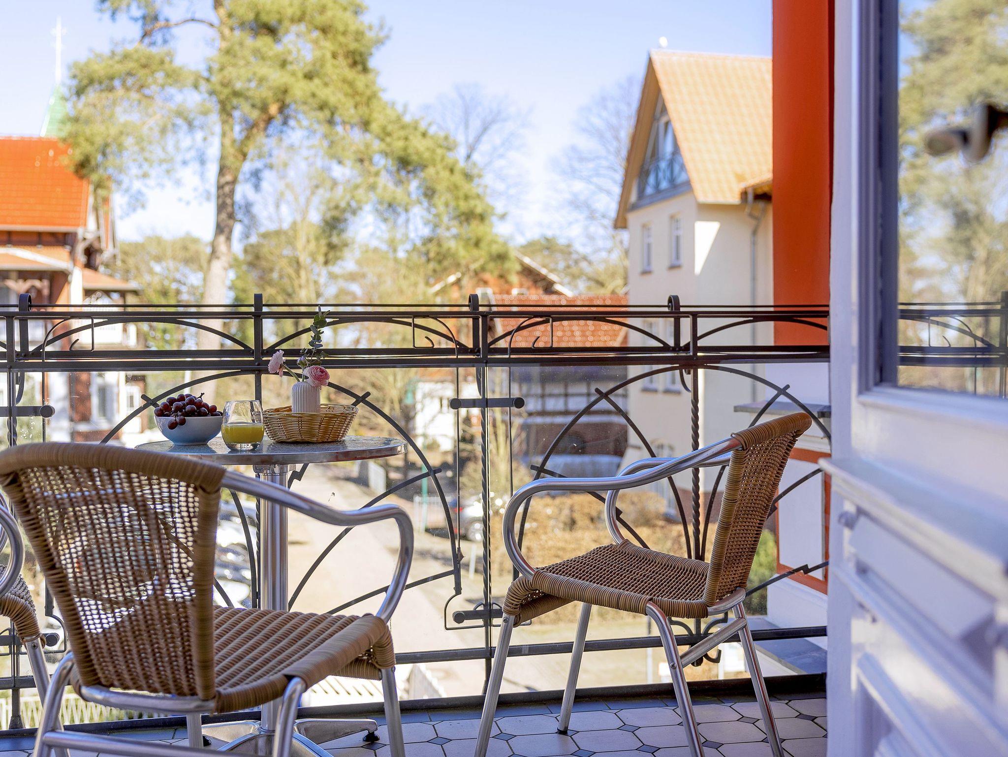 Vom Wohnzimmer aus gelangen Sie auf Ihren möblierten Balkon (Nordseite) für noch mehr Freiraum.