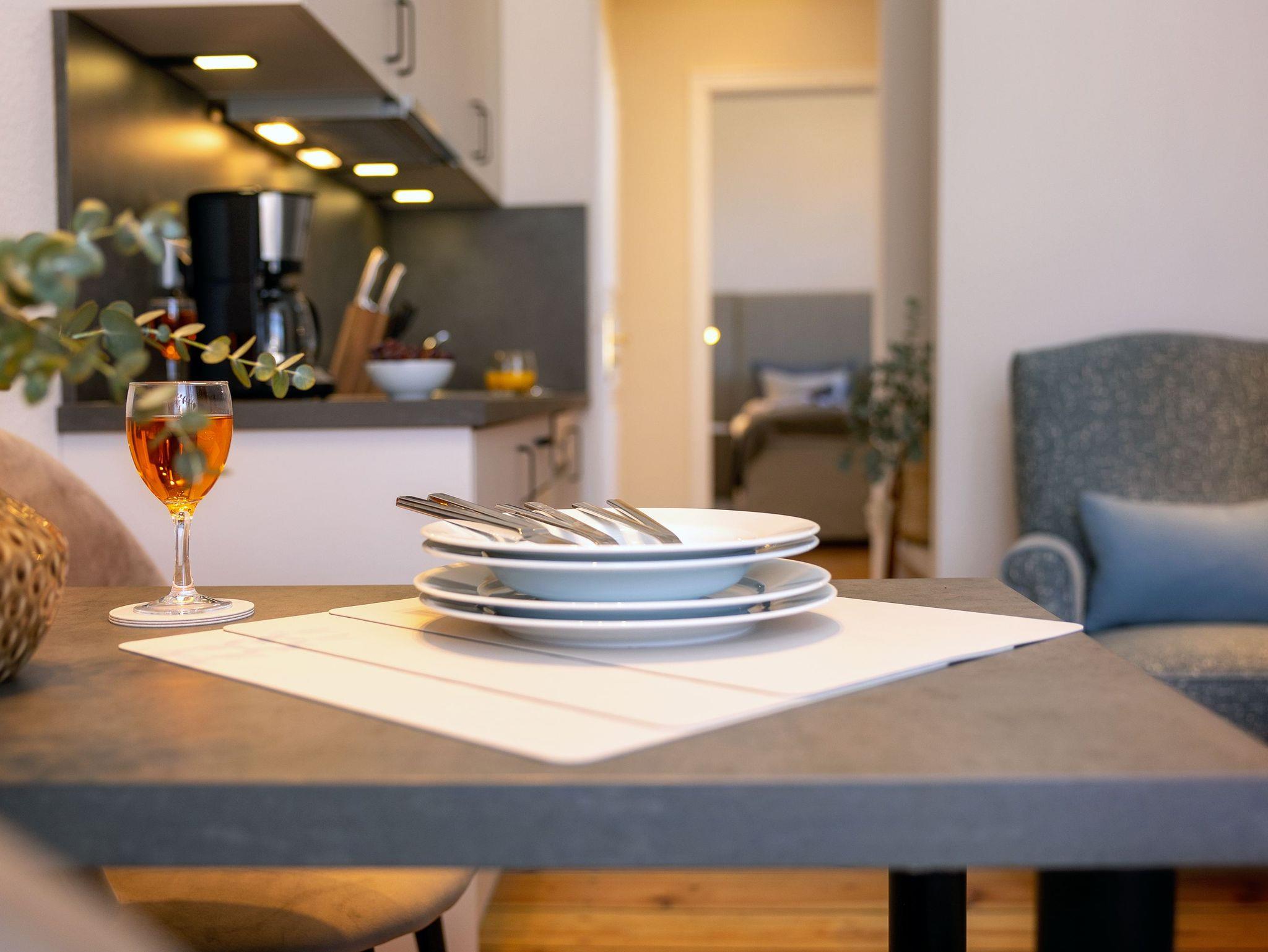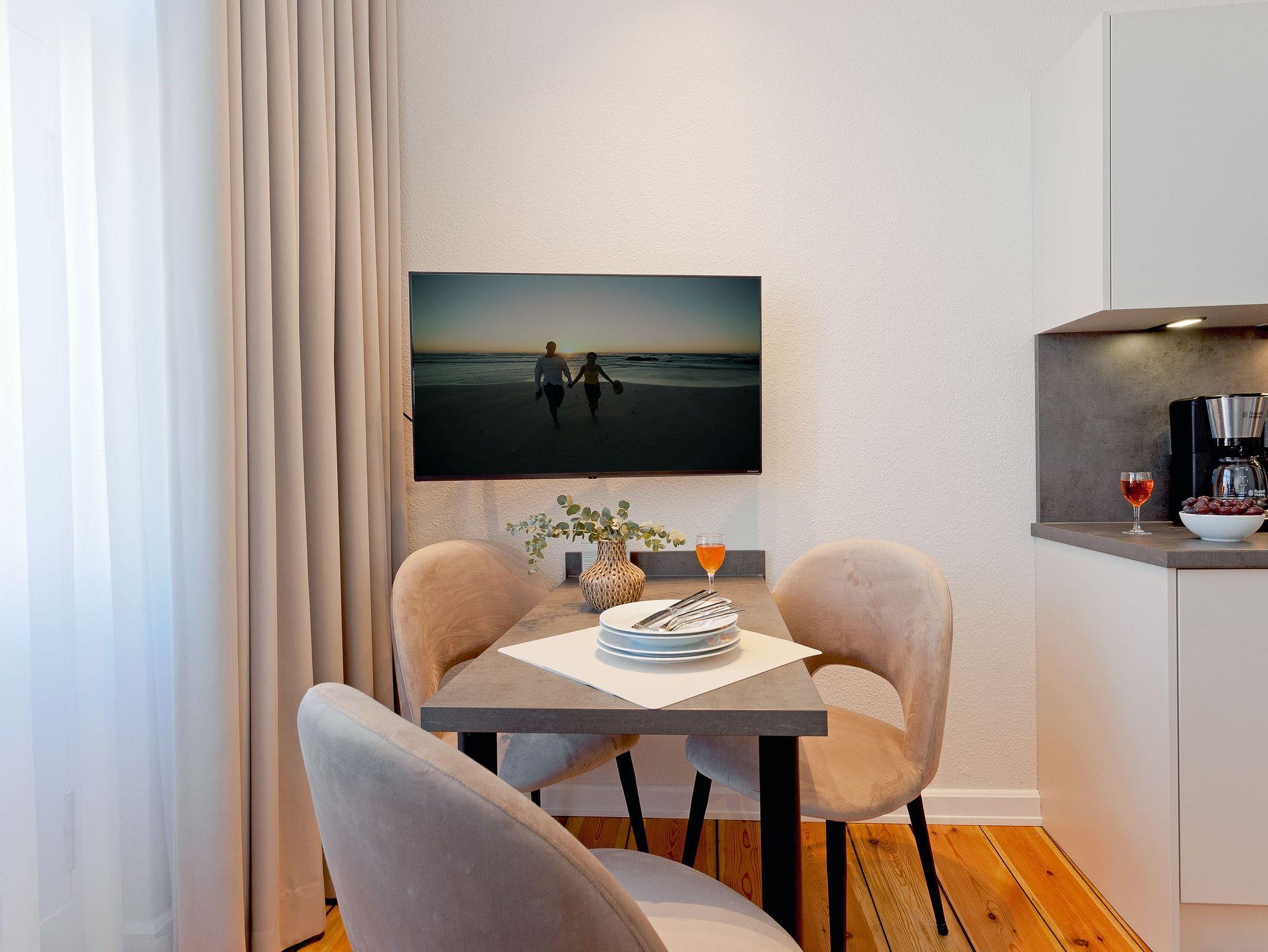 WLAN und ein Parkplatz sind selbstverständlich im Preis inbegriffen. Für unsere kleinen Gäste stellen wir gerne auf Anfrage kostenfrei einen Kinderhochstuhl zur Verfügung. Ein Babybett kann aufgrund der räumlichen Gegebenheiten leider nicht gestellt werden. In diesem Appartement sind keine Haustiere erlaubt.
