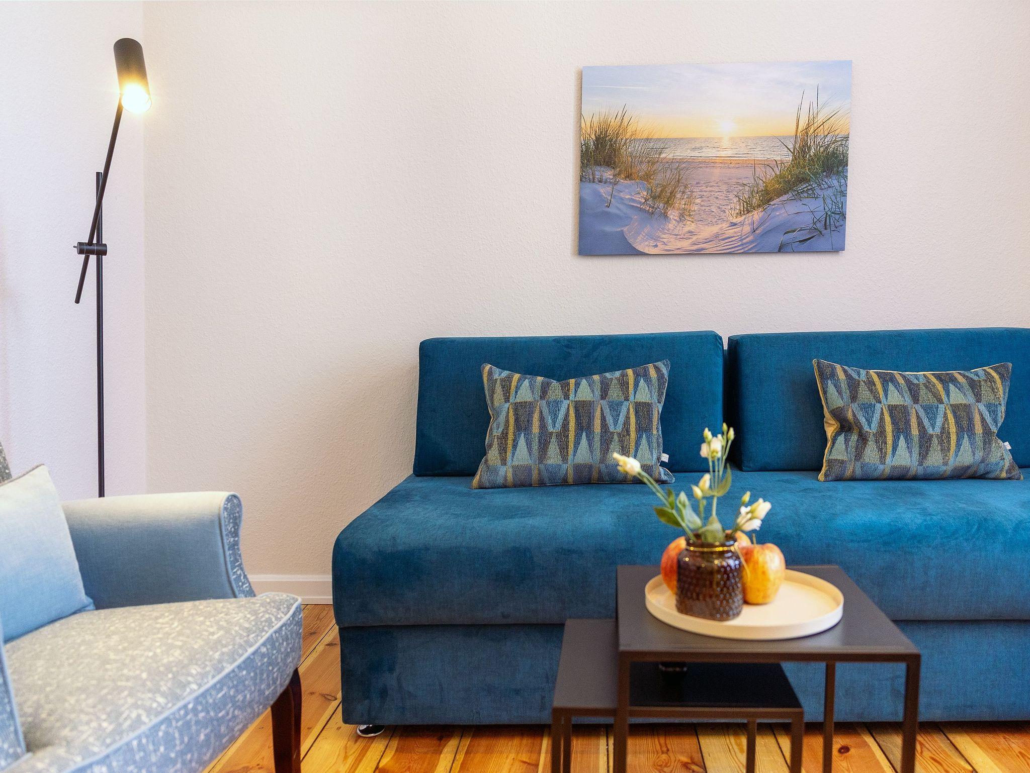 In den Appartements 1-5, 7 & 8 ist das Mitbringen von maximal 2 Haustieren gegen Gebühr erlaubt. Der Hundestrand befindet sich in nur 800 Meter Entfernung Richtung Bansin.