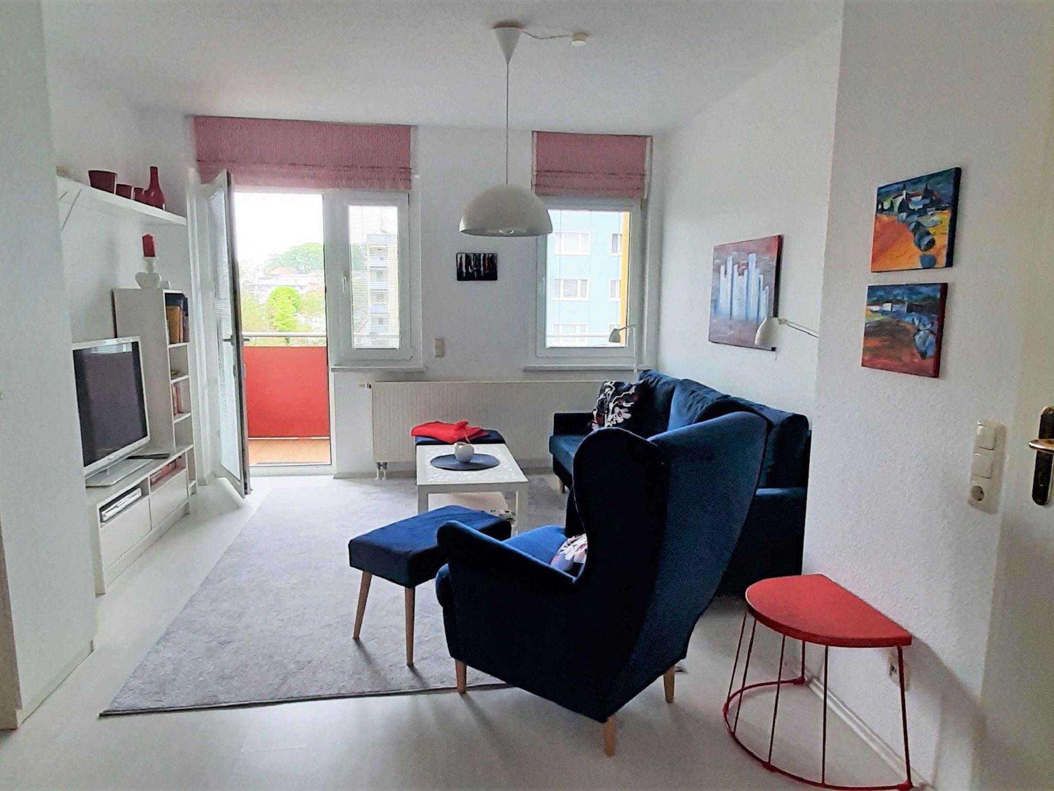 Die helle und moderne 2-Raum-Ferienwohnung bietet Platz für 2 Personen. Sie befindet sich in der 3.Etage, in einem ruhigen, mehrstöckigen Haus mit Aufzug in ruhiger Lage. Das Wohnzimmer ist mit Flat-TV, DVD/CD-Player, und Doppelbettcouch ausgestattet. Von hier aus gelangen Sie auf den großen Balkon mit Süd/Ost Ausrichtung. Das Schlafzimmer erwartet Sie mit einem gemütlichen Doppelbett und einem Kleiderschrank. Die separate, voll ausgestattete Einbauküche ist mit diversen Küchenkleingeräten, wie z.B. Kaffeemaschine, Wasserkocher und Mikrowelle sowie Elektroherd und Kühlschrank mit Tiefkühlfach ausgestattet. Das Badezimmer verfügt über Dusche, WC, Waschbecken und Fön.