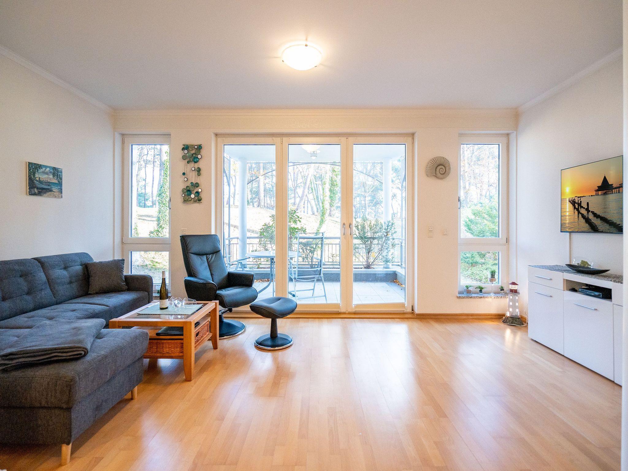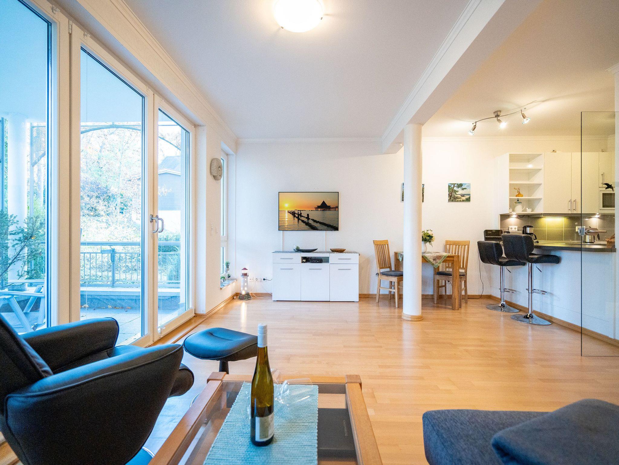 Charmante 1-Raum-Ferienwohnung mit Balkon und Strandkorb direkt an der Promenade von Heringsdorf.