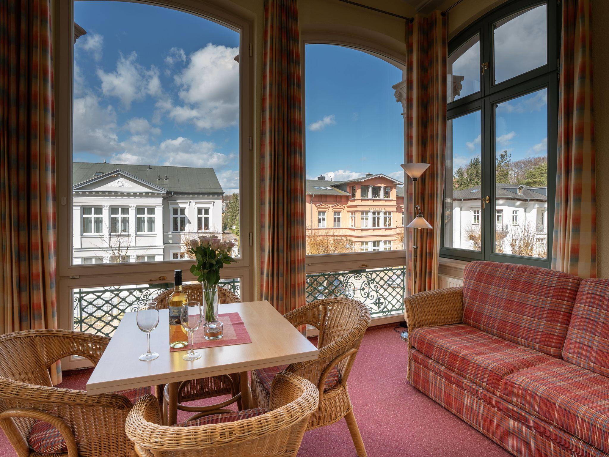 Auf der Terrasse vor dem Haus (Gemeinschaftsnutzung) haben Sie einen herrlichen Blick auf die alten Villen im Stil der Bäderarchitektur.