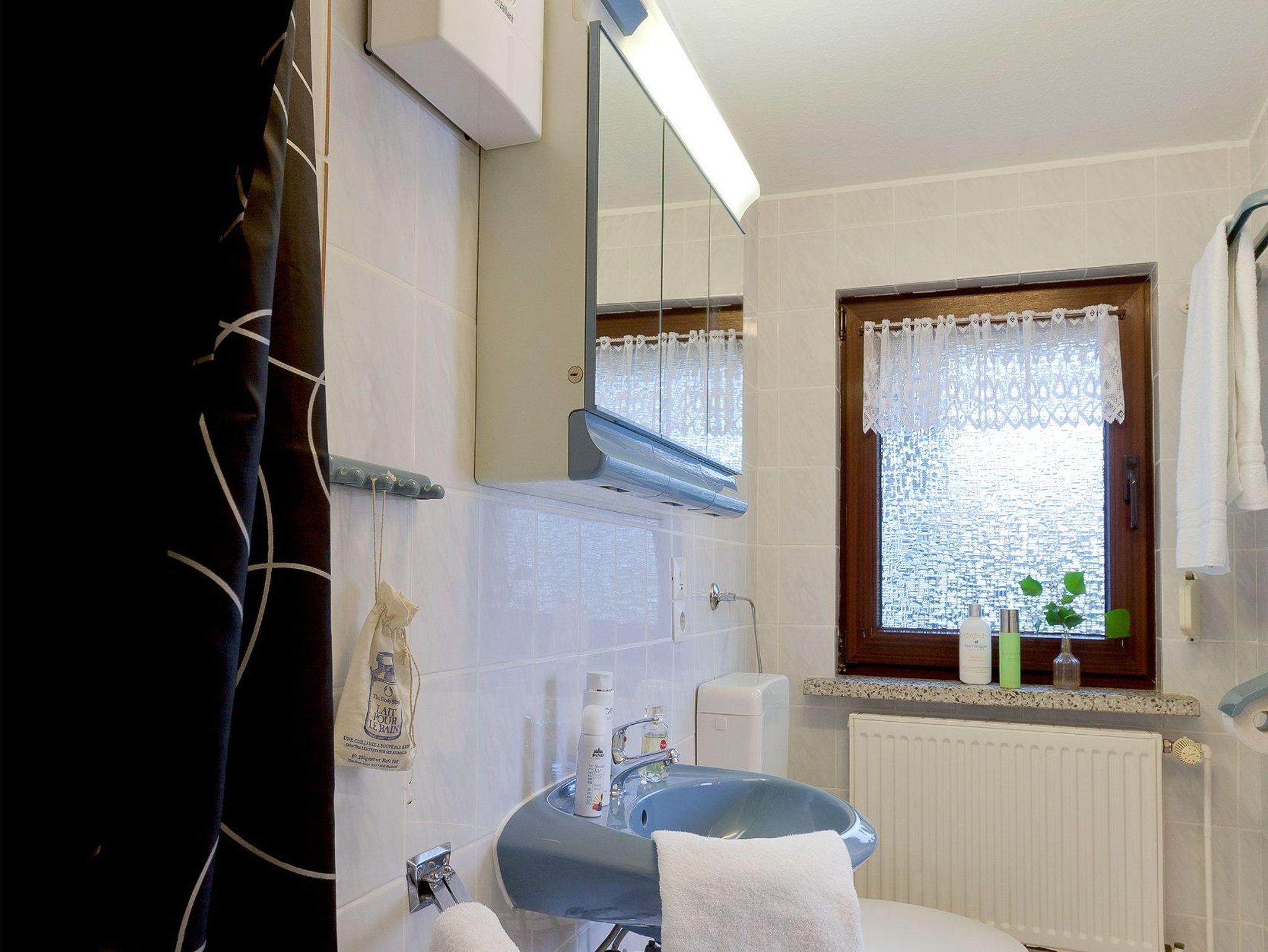 Das Badezimmer mit Fenster verfügt über eine Dusche, ein WC sowie einen Haartrockner und rundet den komfortablen Gesamteindruck ab.