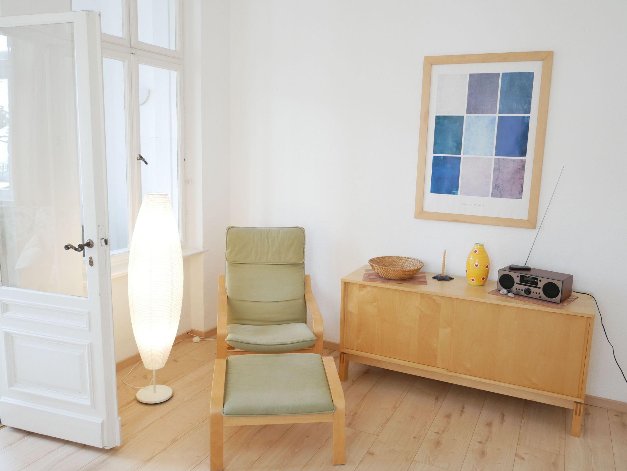 Die komfortable, helle 2-Raum-Nichtraucher-Ferienwohnung (60 qm) befindet sich in Hochparterre.