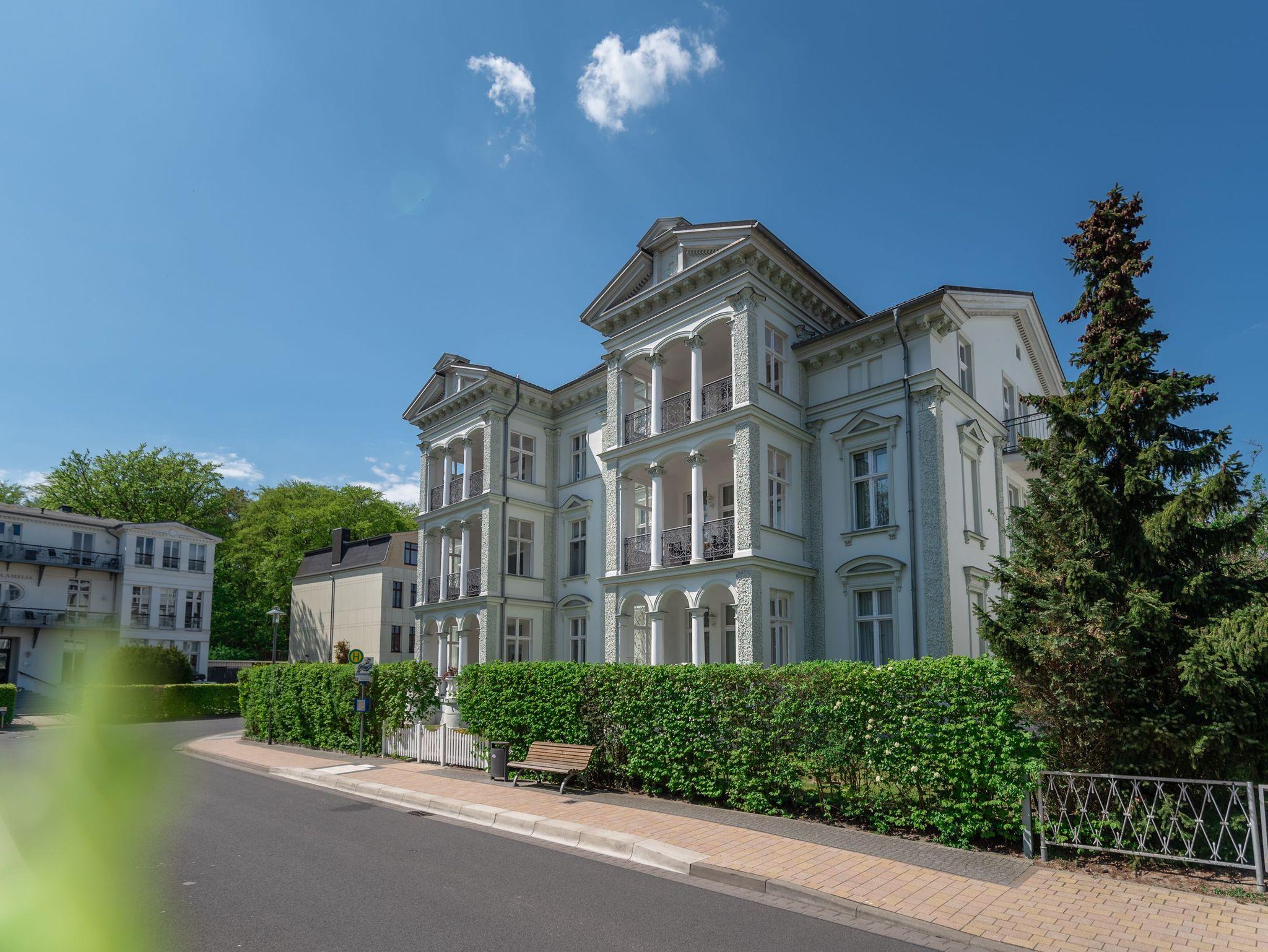 Erleben Sie die elegante Villa Franz Josef in Heringsdorf, nur 130 m vom Ostseestrand, mit modernem Komfort und seitlichem Meerblick.