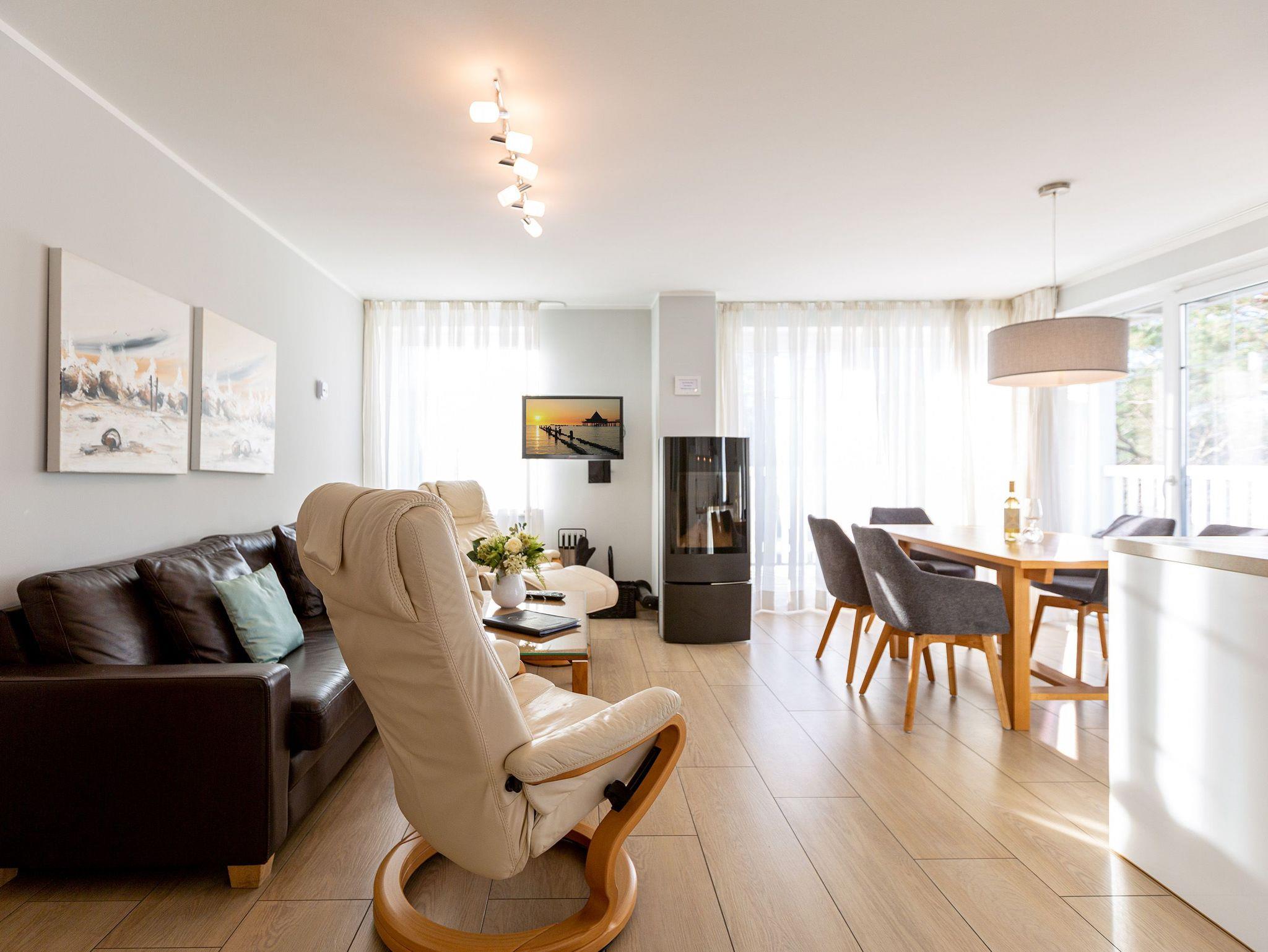 Exklusives Appartement mit Kamin, Balkon und Strandkorb am Meer in Heringsdorf.