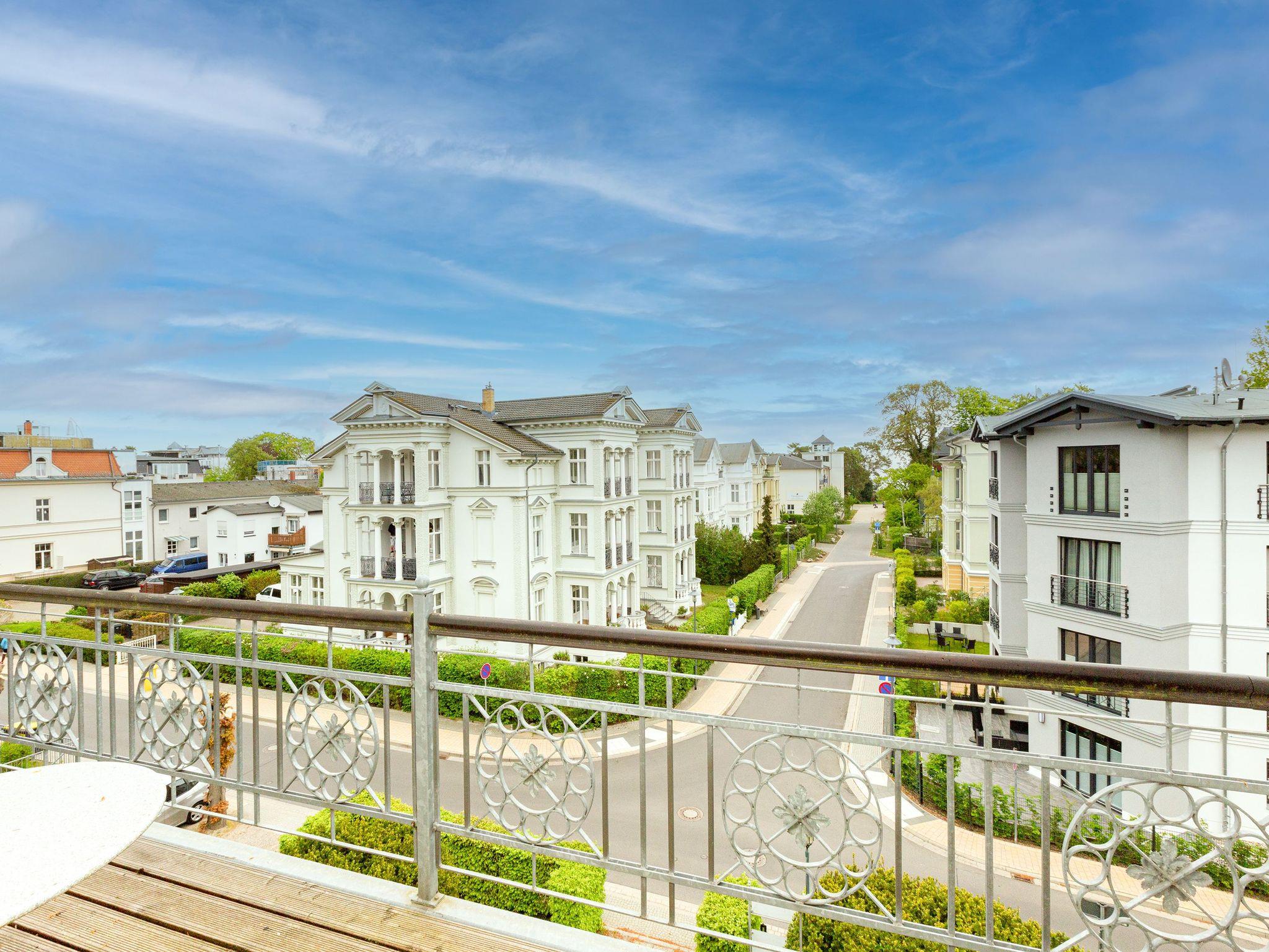 Exklusive Villa Amelia in Heringsdorf, nur 140 m von der Ostsee entfernt, mit stilvoller Vintage-Einrichtung und Balkon.