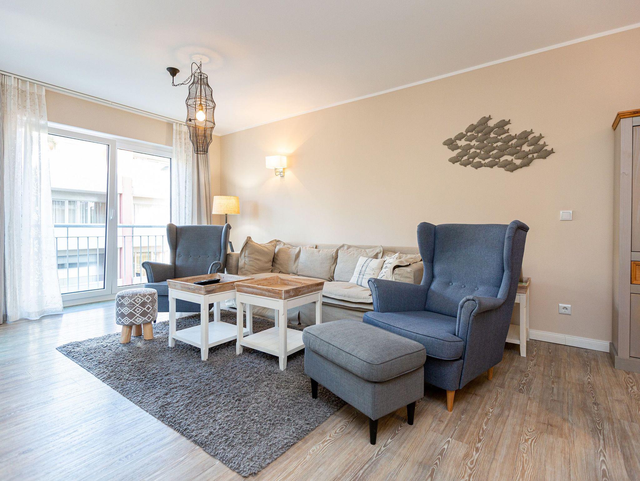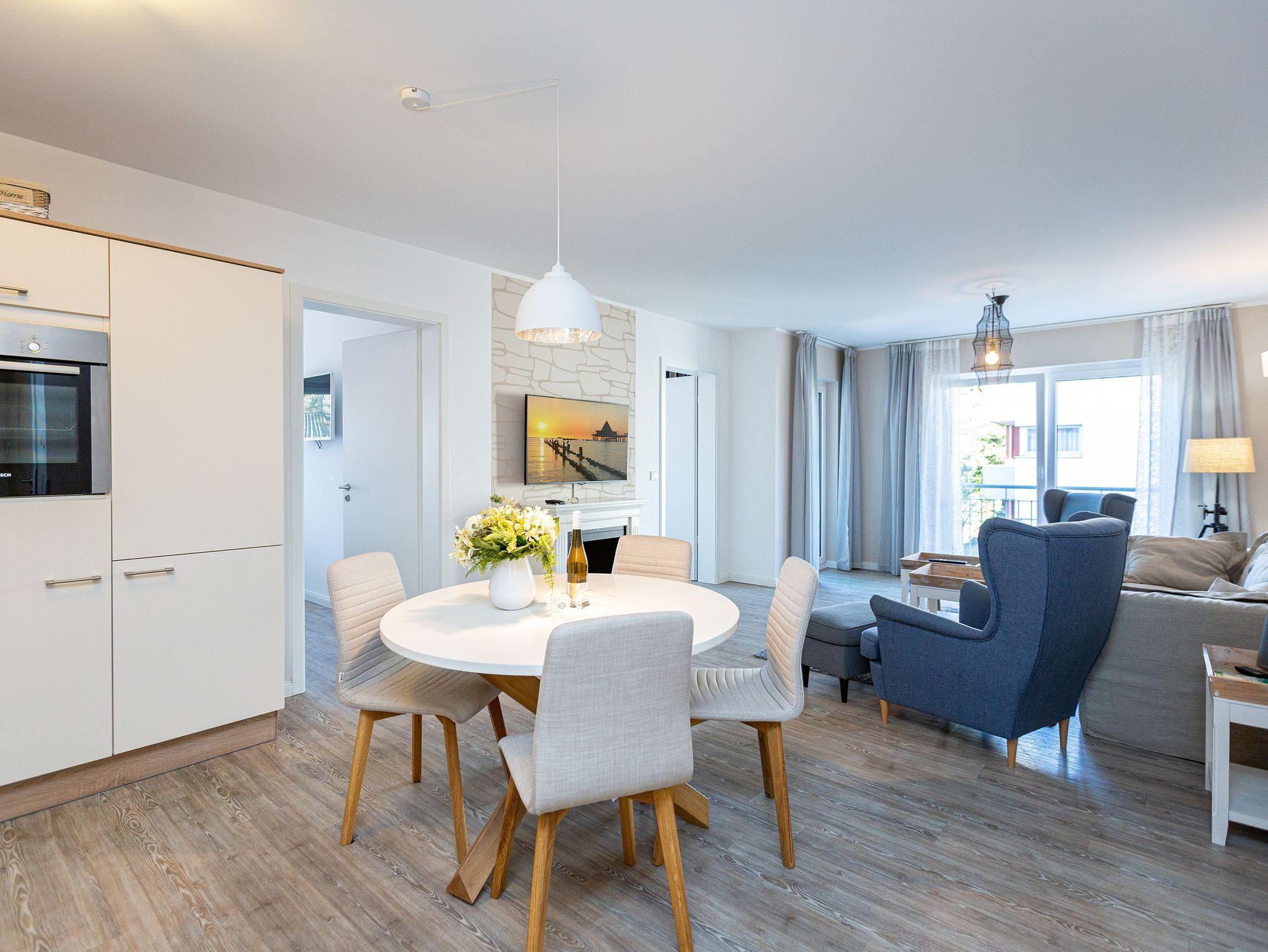Charmante 3-Raum-Ferienwohnung in Heringsdorf mit Balkon, Elektrokamin und strandnaher Lage für entspannte Urlaubstage.