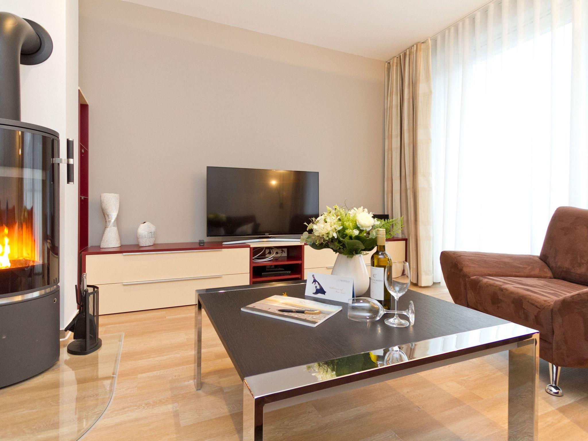Genießen Sie Komfort und Entspannung in der Residenz am Kulm, Villa Dorian 18, mit Kamin, zwei Balkonen und Wellnessbad in Heringsdorf.