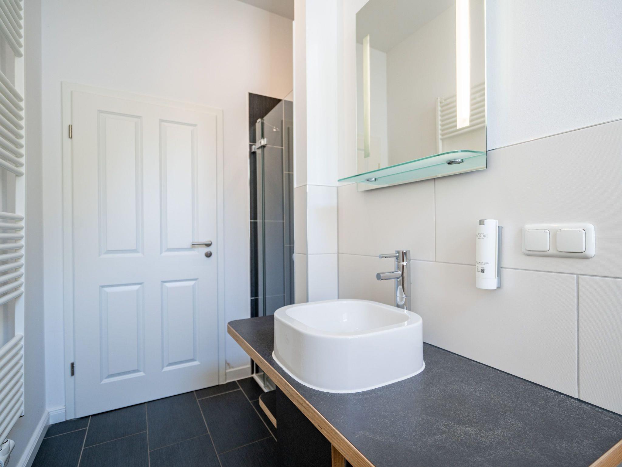 Möblierung mit Geschmack und Stil. Im Erdgeschoss des Hauses ( 57 qm) erwartet Sie diese modern gestaltete 2-Raum-Ferienwohnung für 2 Personen. In jeder Ecke Ihres Domizils lassen sich ausgesuchte Details entdecken, die Ihren Aufenthalt besonders gestalten. Genießen Sie gemütliche Stunden vor dem ( per Fernbedienung bedienbaren) Gas-Designkamin. An den Wohnbereich mit gemütlicher Couch und Flat-TV schließt sich die offene, komplett ausgestattete Küche und der Essbereich an. Von hier hat man Zugang zur Südterrasse. 1 Schlafzimmer mit Doppelbett und ein schönes Bad mit Dusche ergänzen die Räumlichkeiten. Ein Pkw-Stellplatz steht am Haus zur Verfügung. Für Ihren Komfort steht die Erstausstattung Wäsche ( Bettwäsche, 1 Duschtuch [&] 2 kleine Handtücher) für Sie bereit. Das WLAN-Netz im Haus kann kostenfrei genutzt werden.