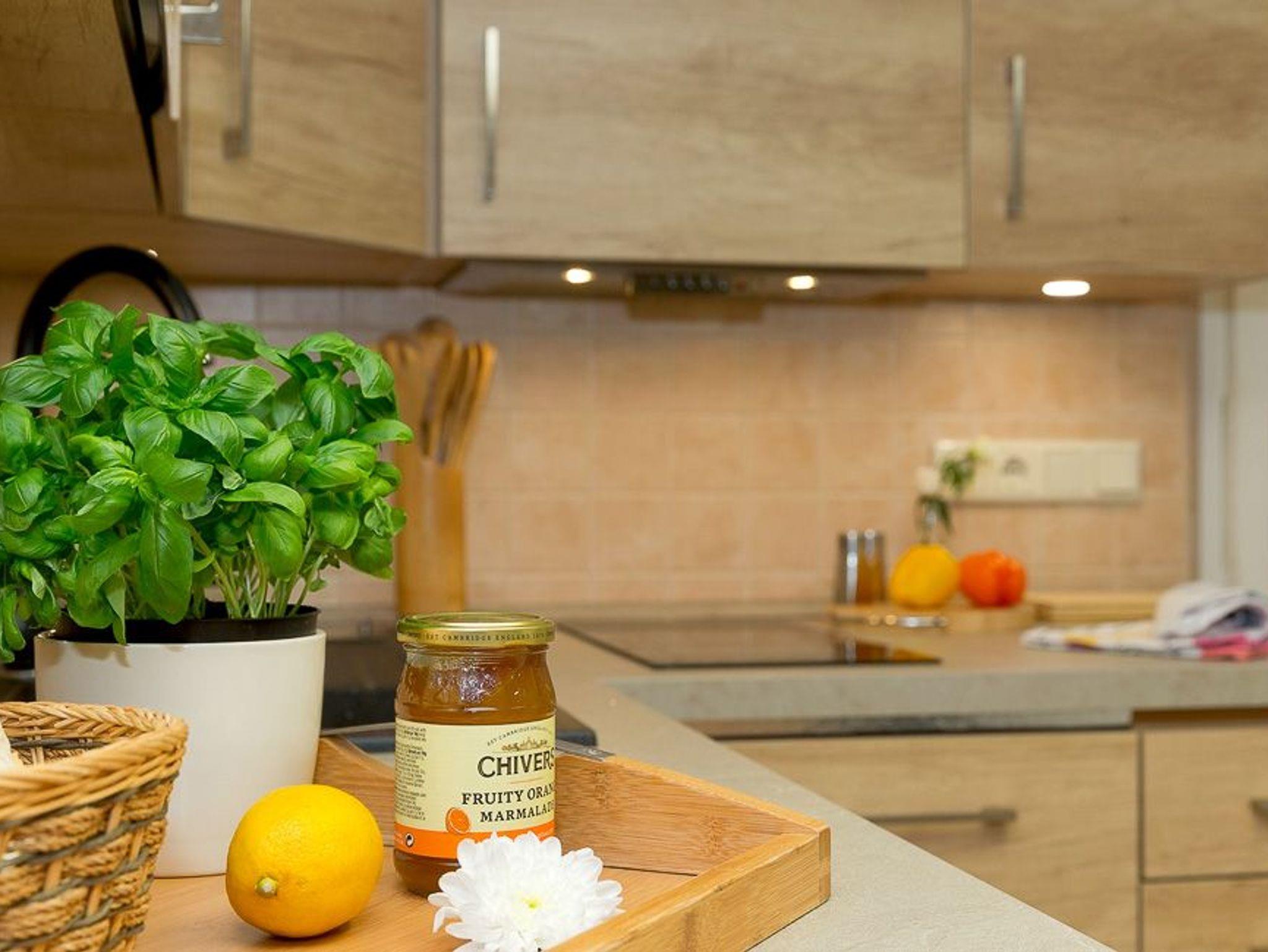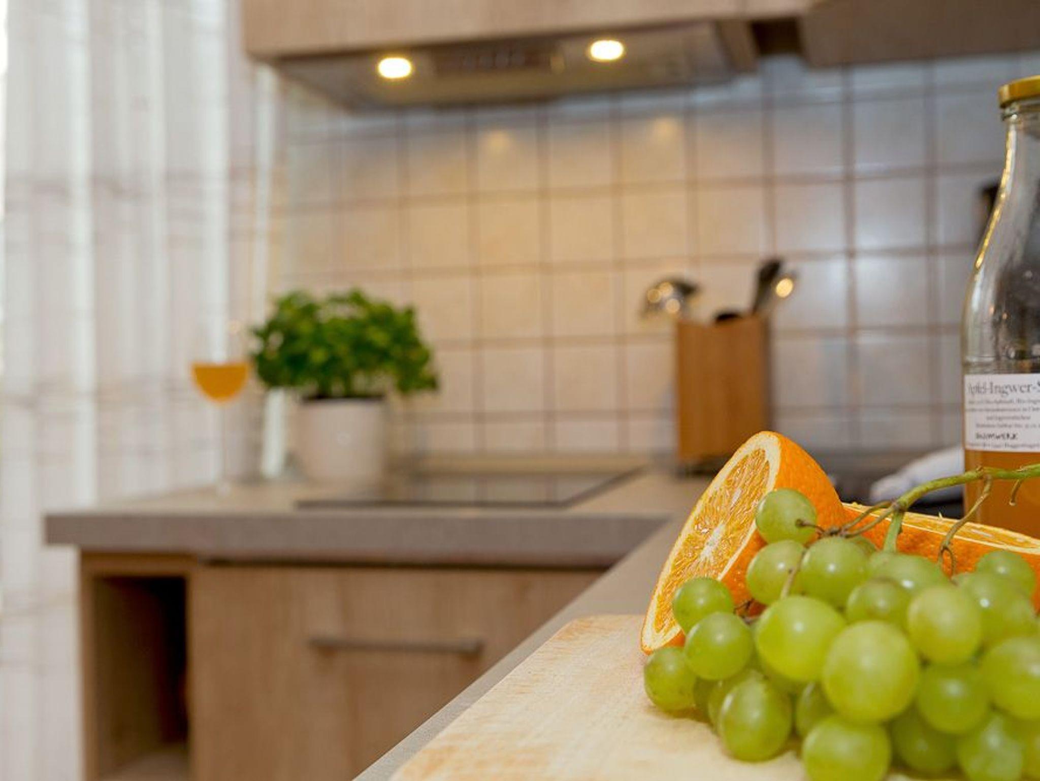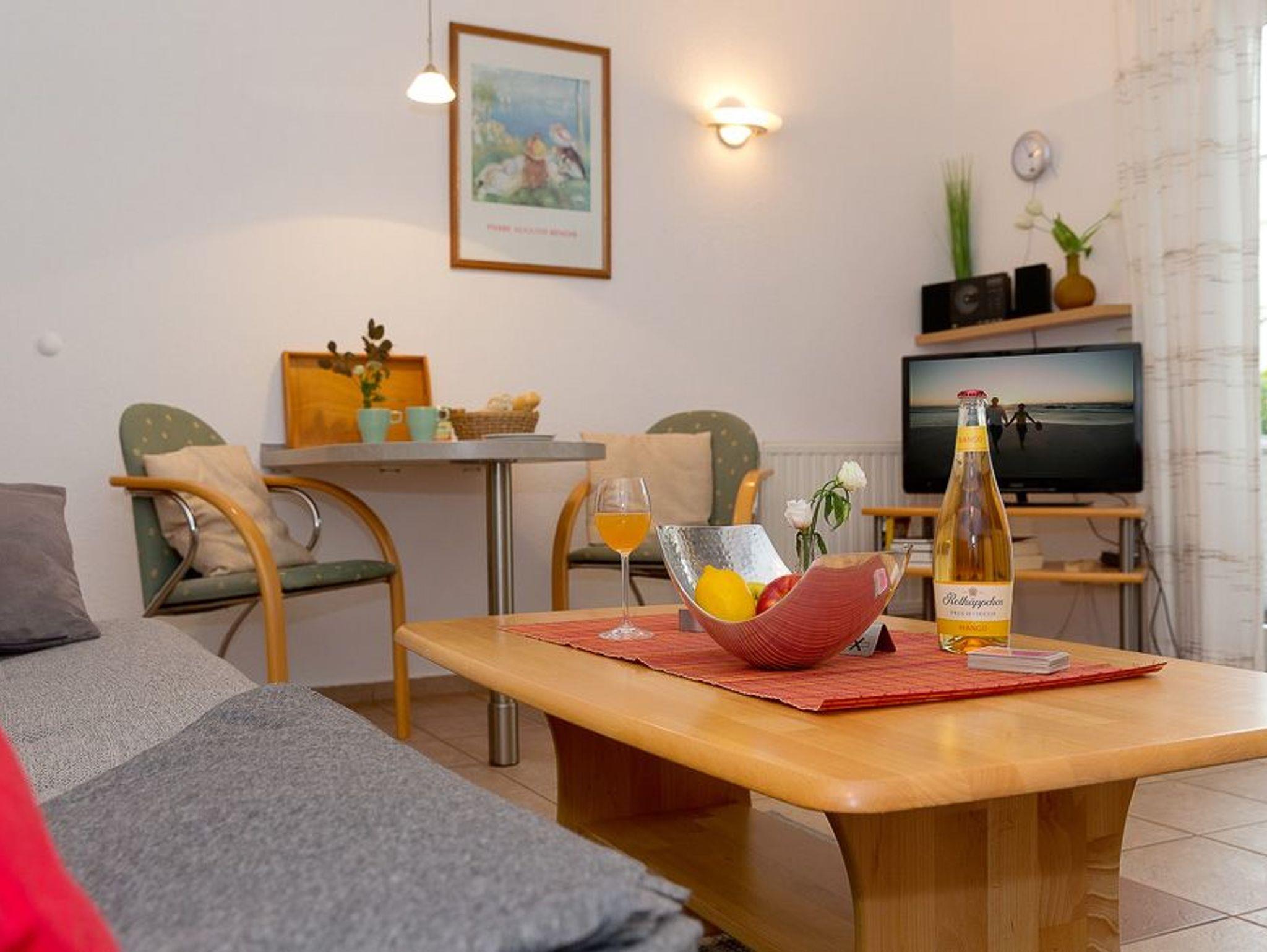 Das Zwei-Zimmer-Appartement befindet sich ebenerdig und bietet mit seinen 40 Quadratmetern ausreichend Platz für einen erholsamen Urlaub zu zweit oder auch zu dritt. Der Wohnbereich verfügt über eine integrierte moderne Küchenzeile (inkl. Geschirrspüler, Induktionskochfeld, Mikrowelle m. Grillfunktion, Kühlschrank mit Gefrierfach, Wasserkocher, Toaster, Kaffeemaschine und Eierkocher) mit Esstisch für drei Personen sowie über ein gemütliches Sofa, auf dem Sie nach einem erholsamen Urlaubstag die Seele baumeln lassen können. Ein moderner Flat TV macht es möglich, dass Sie auch im Urlaub auf keine Ihrer Lieblingsserien verzichten müssen.