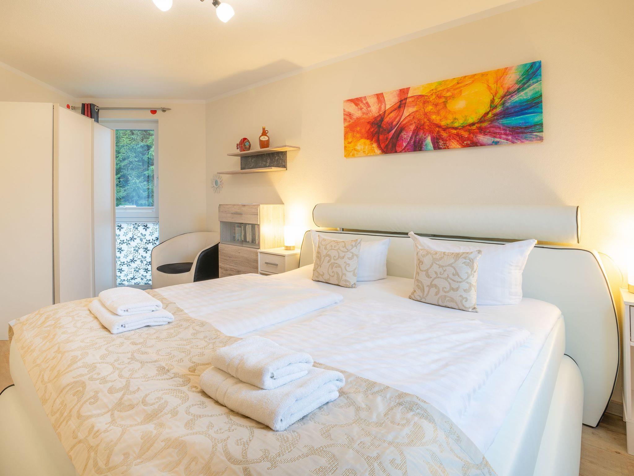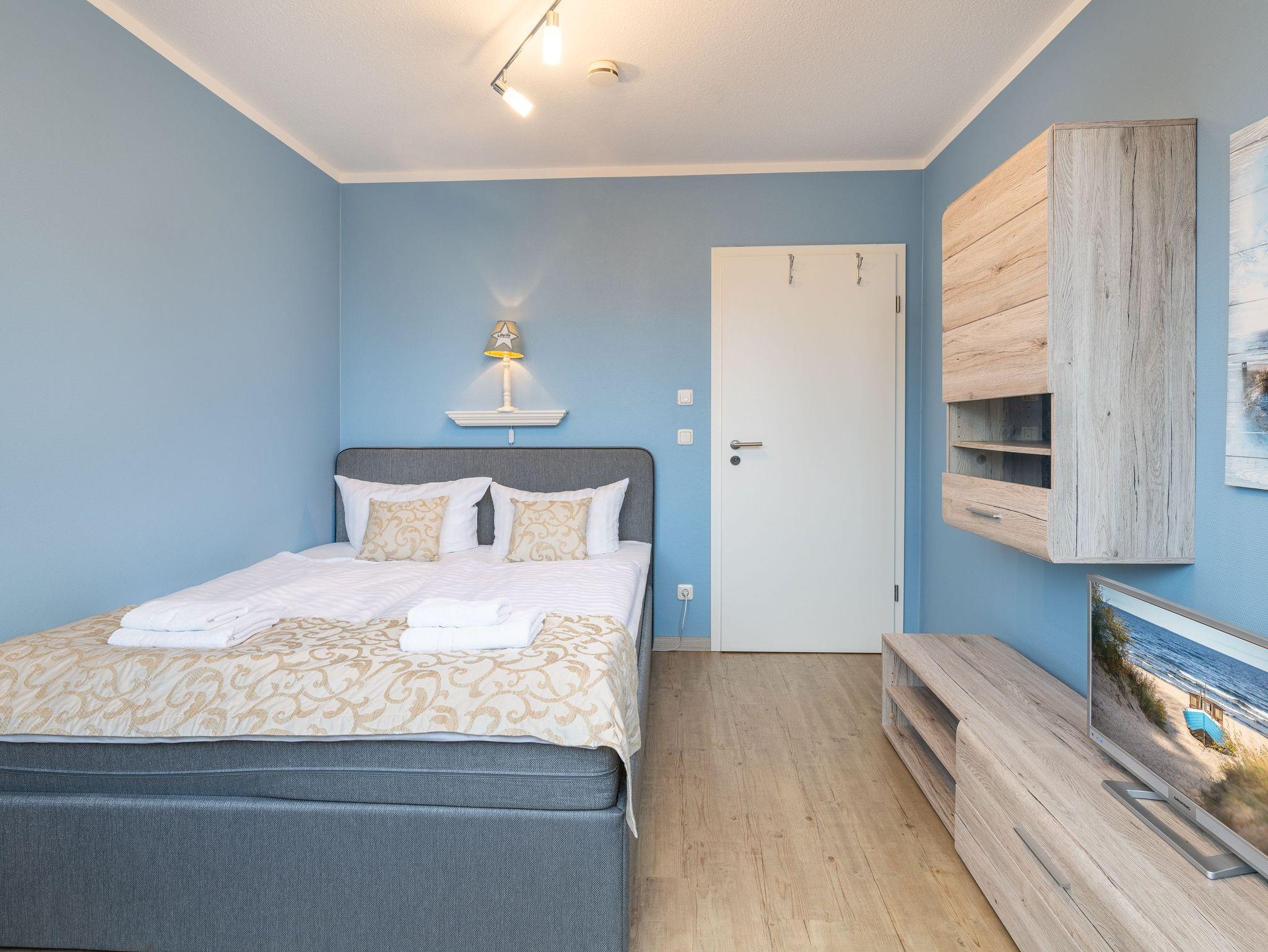 Beide Schlafzimmer sind jeweils mit einem bequemen Doppelbett (1. Schlafzimmer: 180 x 200cm / durchgehende Matratze / 2. Schlafzimmer mit TV: 160 x 200cm / zwei getrennte Matratzen) ausgestattet und bieten so perfekte Voraussetzungen für erholsame Nächte während Ihrer Urlaubszeit. Eines der beiden Zimmer verfügt zusätzlich über einen Flat-TV.