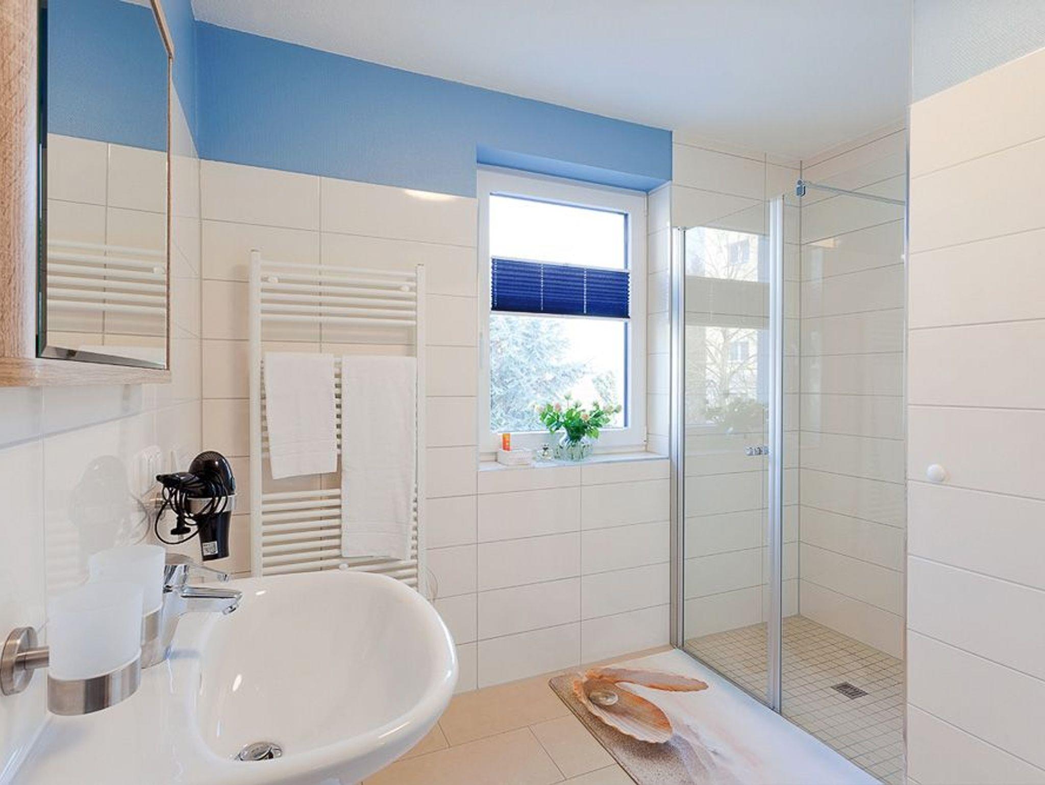 Damit Sie Ihre wohlverdiente Urlaubszeit bereits am Anreisetag in vollen Zügen genießen können haben wir das Bett für Sie und das für Ihre lieben Mitreisenden bereits bezogen und ein Duschtuch sowie ein kleines Handtuch bereitgelegt. Komfortabel gestaltet erwartet Sie eine ebenerdige Echtglasdusche, WC, Haartrockner sowie ein Handtuchheizkörper.