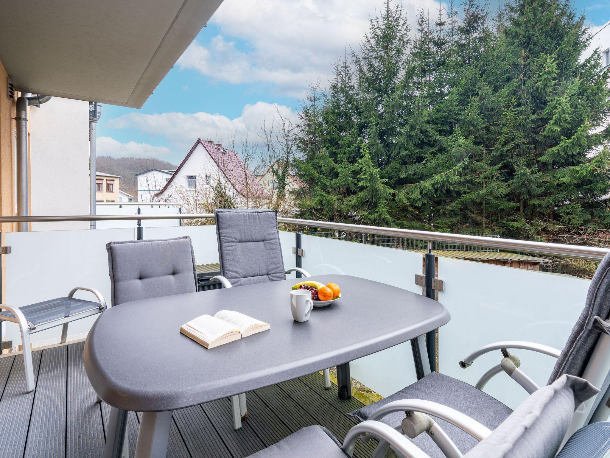 Modernes, helles Appartement Nr. 5 in Villa Bettina, Heringsdorf, mit Balkon, WLAN und voll ausgestatteter Küche.